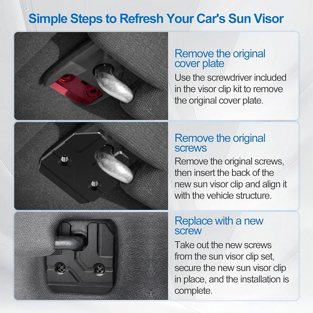 تركيب بسيط: لا حاجة لتوظيف محترفين. أولاً، قم بإزالة اللوحة الأصلية باستخدام الأدوات المضمنة. بعد ذلك، قم بمحاذاة حاجب الشمس الجديد. وأخيرًا، قم بتثبيته باستخدام البراغي المرفقة. فقط ثلاث خطوات بسيطة تكمل عملية التثبيت