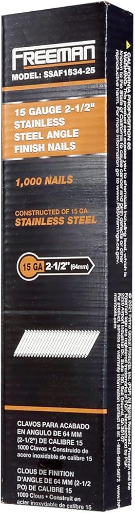 Freeman SSAF1534-25 15-Gauge 2-1/2" أظافر زاوية من الفولاذ المقاوم للصدأ مربوطة بالغراء (عدد 1000)