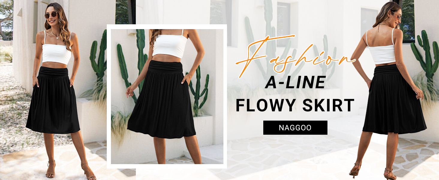 • Features: The flowy skirt is designed with elastic high waist, pleated, aline style and utility side pockets.