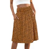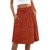Naggoo Women's Summer Boho Flowy Midi Skirt Fashion Elastic High Waisted Pleated Knee Length Beach Skirts
