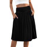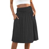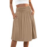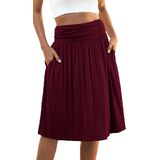 Naggoo المرأة الصيف مرونة عالية الخصر ميدي التنانير Flowy ألين مطوي تنورة طول الركبة مع جيوب S-XXXL in Kuwait