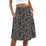 Solid color,floral printed,aline,elastic high waist,knee length,pleated midi skirt,a line style makes you more attractive. wide high waist makes this skirt simple but elegant and classy.Women Elastic High Wasited Floral Print Pleated Midi Skirt