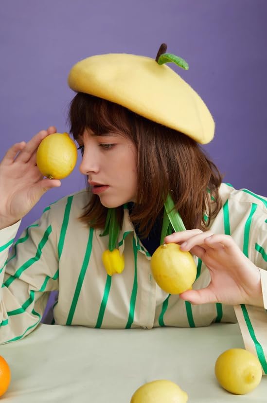 اليابان لوليتا خمر مضحك الضفدع قبعة قبعة قبعة للنساء الرسام الأخضر هدية (قبعة الليمون)