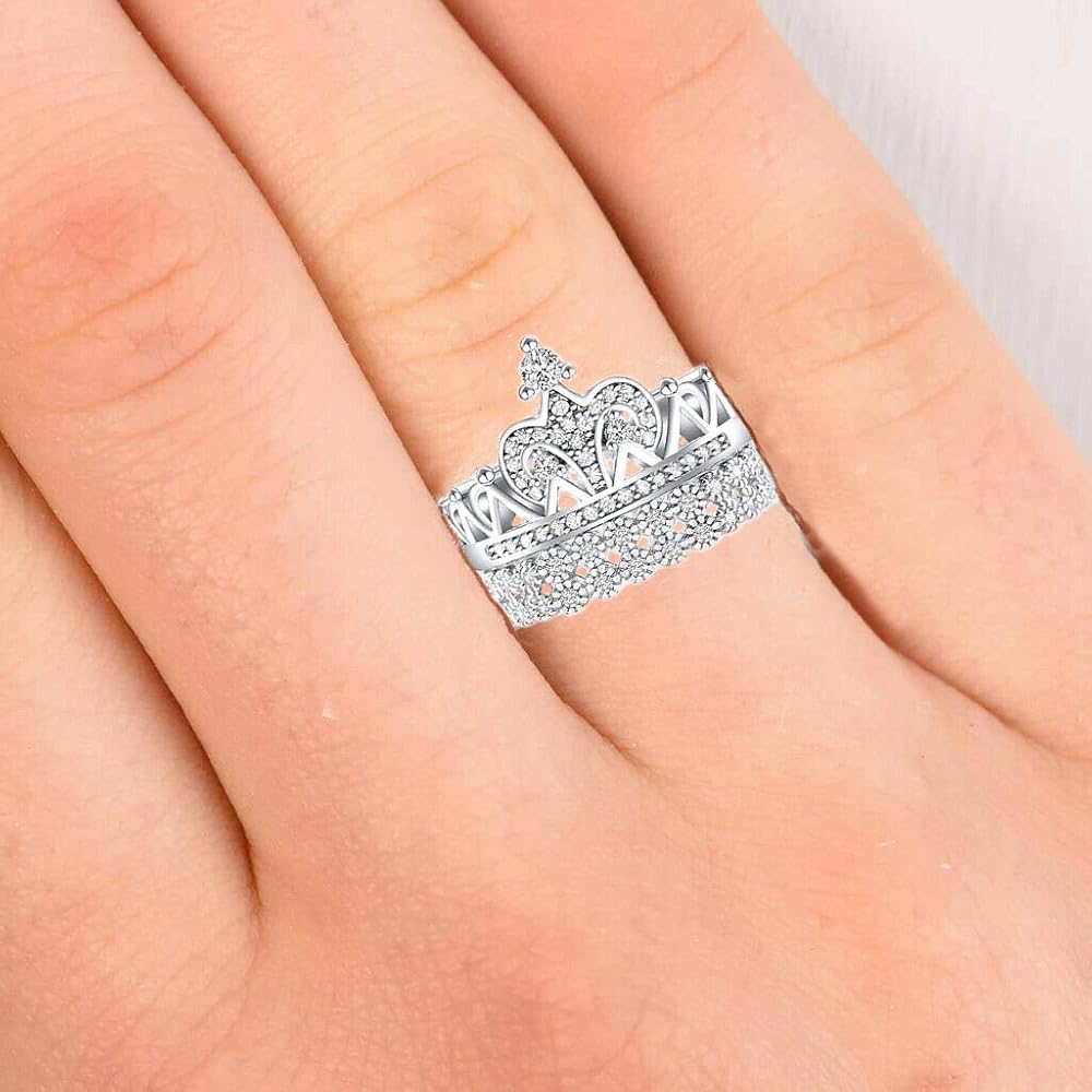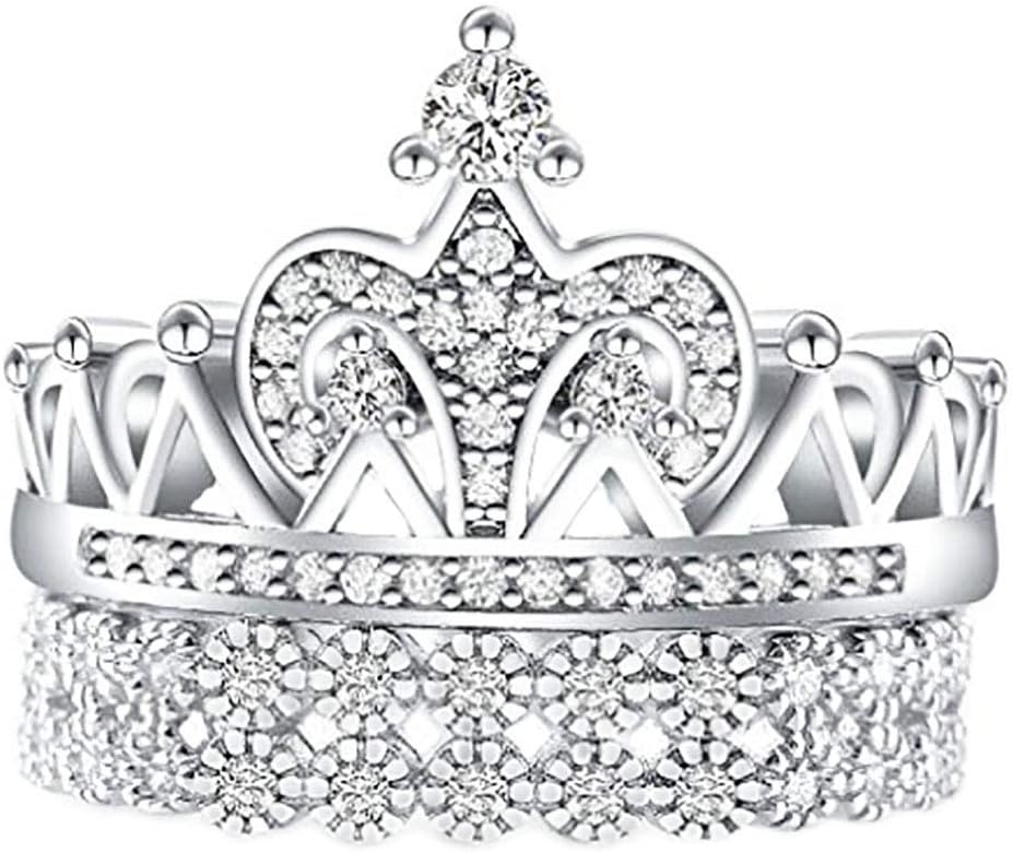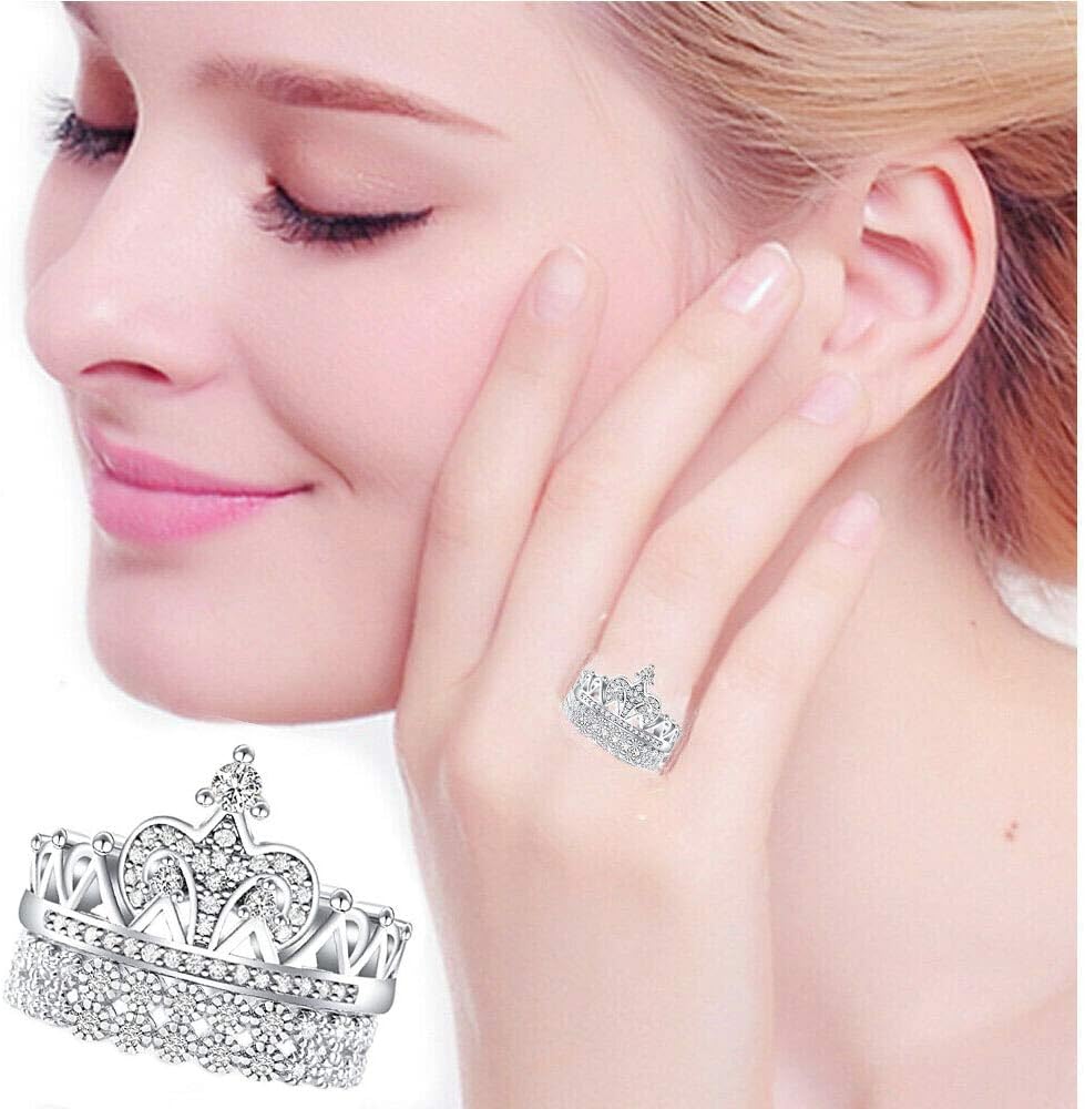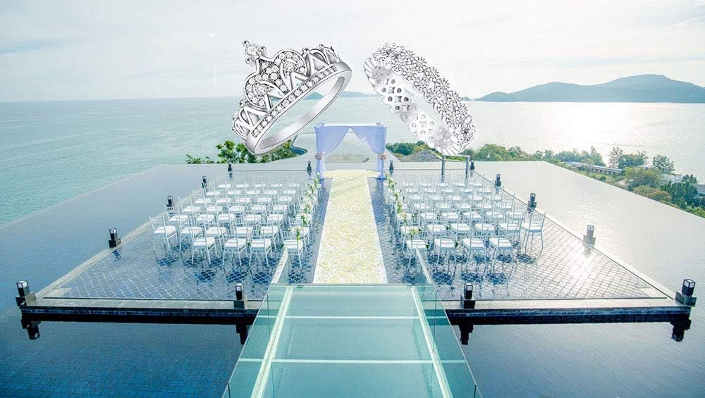 2.40ct Real 925 Sterling Silver Wedding Engagement Princess Tiara Queen Crown set of 2 pieces Ring Women Ladies Ideal great gifts, Graduation , friend Women best gifts , Daughter, Wife, Mom g, Wedding , for Anniversary , , Friend , or just a surprise to remind that special one how much you care.