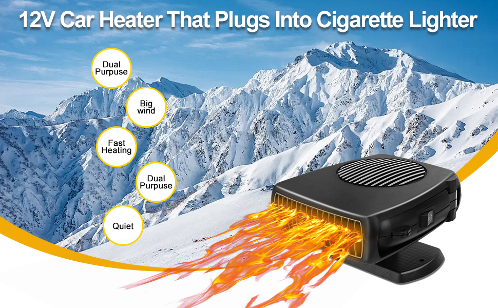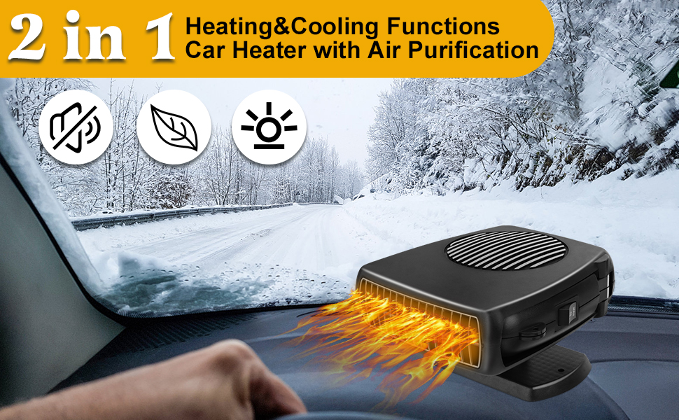 • 【تدفئة وتبريد 2 في 1】يحتوي سخان السيارة هذا على وضعين للإعداد: التسخين والتبريد. تحتاج فقط إلى تغيير المفتاح، ثم سيخرج الهواء الساخن أو الرياح الباردة على الفور حسب احتياجاتك. سخان السيارة هذا ليس مثاليًا فقط لإزالة الضباب/إزالة الجليد عن الزجاج الأمامي. ولكن يمكن استخدامه أيضًا كمروحة تبريد لتمنحك الرياح في الصيف.