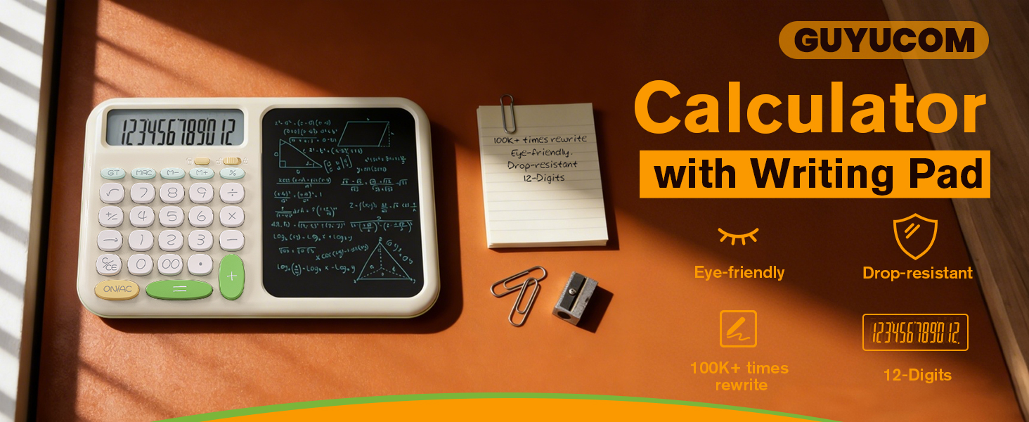 تصميم محسّن بألوان مرحة: تم تصميم الآلة الحاسبة باستخدام لوحة ألوان نظيفة ومنعشة، وتمزج بين التصميم الاحترافي والمظهر العصري الودود. إن بنيته القوية وأسطحه الناعمة وتصميمه المتوازن يجعل المهام اليومية تبدو أخف وأكثر متعة