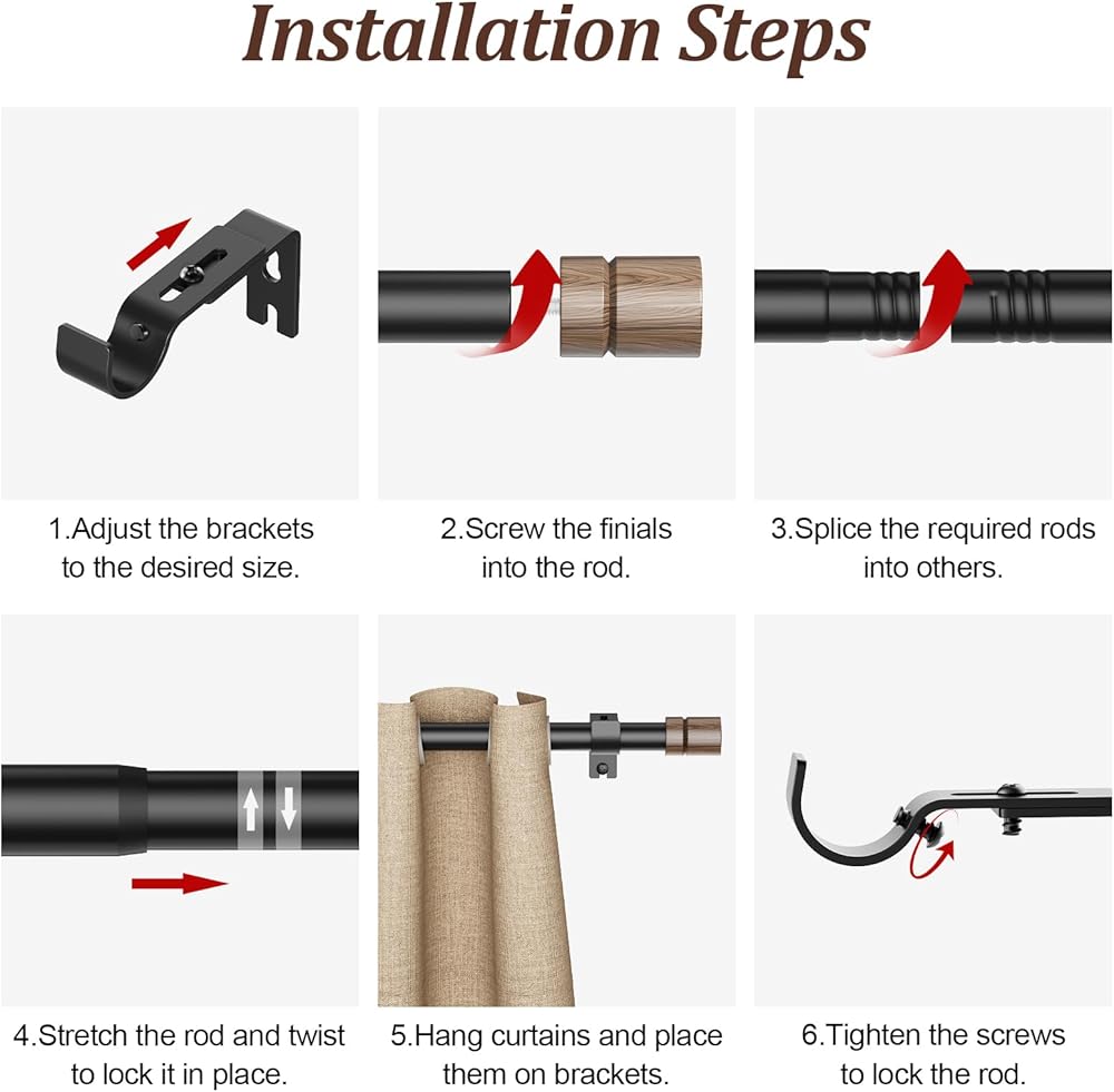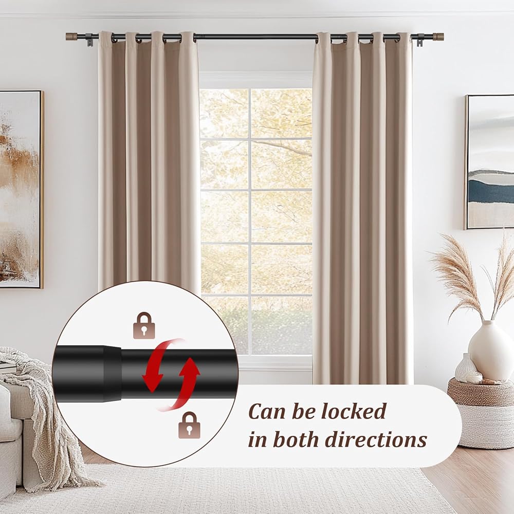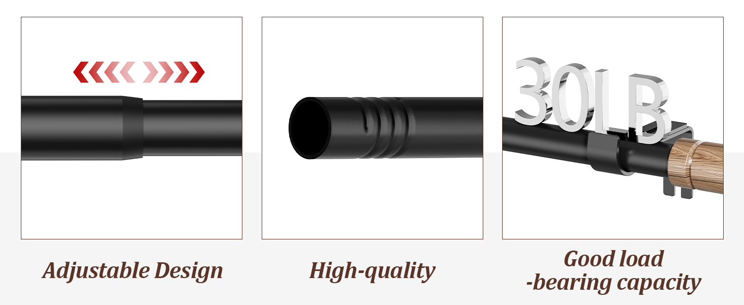 تصميم قابل للتعديل ومغلق: يتكون قضيب ستارة النافذة من أقسام متعددة. يمكنك تمديده إلى الطول المطلوب ببساطة عن طريق ربط القضبان معًا أو عن طريق تحريك القضيب التلسكوبي في مكانه