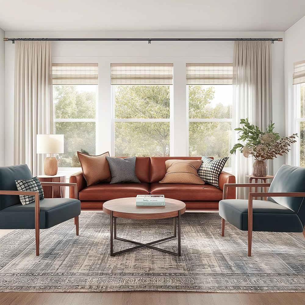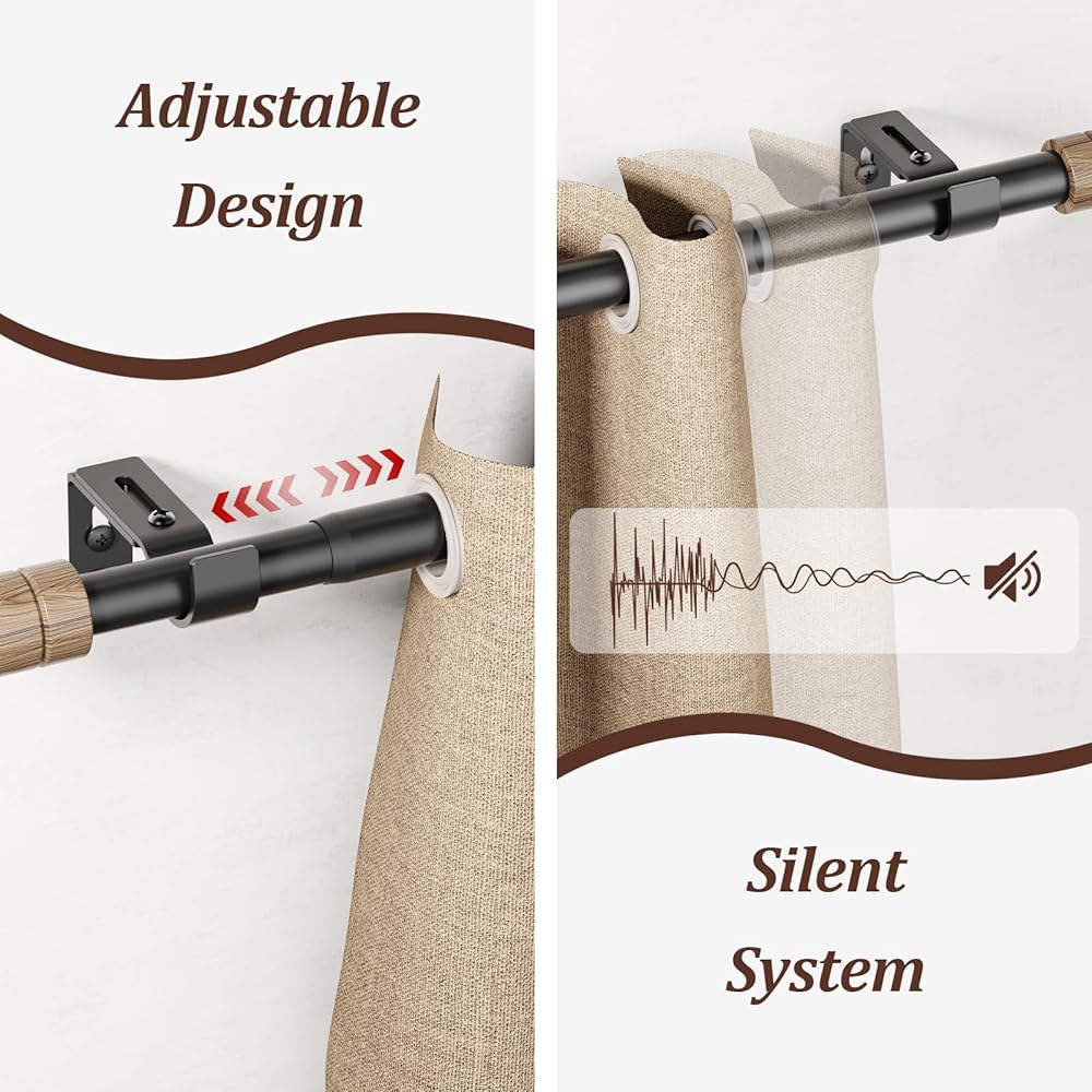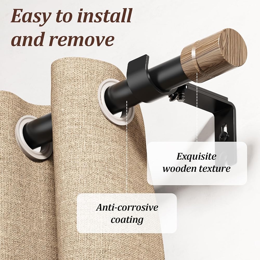 تصميم فريد: قضبان الستارة مقاس 120 بوصة مزينة بلمسات نهائية كلاسيكية من الخشب الحبيبي لنوافذك. يناسب التصميم الفريد أي نمط داخلي ويعزز الجو الأنيق العام لمنزلك