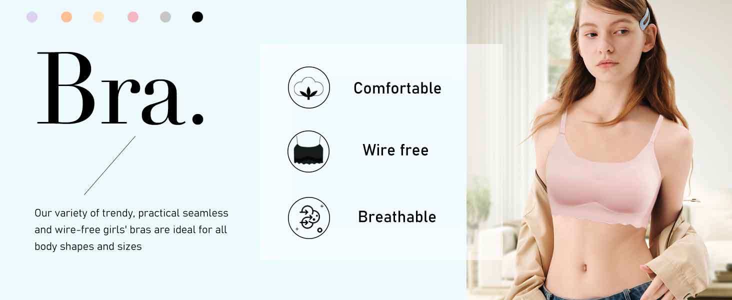 لا توجد قيود أو دعم متوسط - تم تصميم حمالات الصدر التدريبية للفتيات هذه بدون حواف أو أسلاك. لذلك لن تشعر بالضغط الزائد وضبط النفس. الجزء الداخلي عبارة عن كوب ناعم، مسامي وليس ثقيلًا، ولكنه يوفر أيضًا دعمًا إضافيًا للتدريب عند المشاركة في أنشطة مختلفة.
