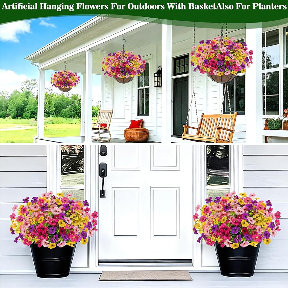 【Versatile Seasonal Decor】Perfect for spring and summer, these lush artificial hanging plants add charm to yards, porches, gardens, balconies, and windowsills. Ideal for daily garden decoration, memorial spaces, and DIY projects, our fake hanging baskets elevate any outdoor hanging planter setup with timeless style.