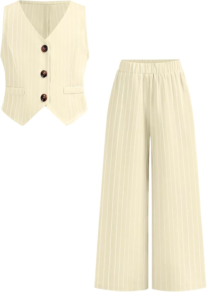 【Pack Includes】Our package provides a girl's single-breasted vest x 1, wide-leg pants x 1. Fashion and versatile style, your girls can also wear them separately.