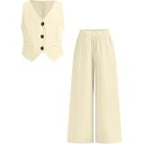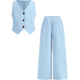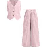 Toddler Girls Summer Clothes 2 Piece Outfits Single-Breasted Striped Vest and Wide-Leg Pants Clothing Set