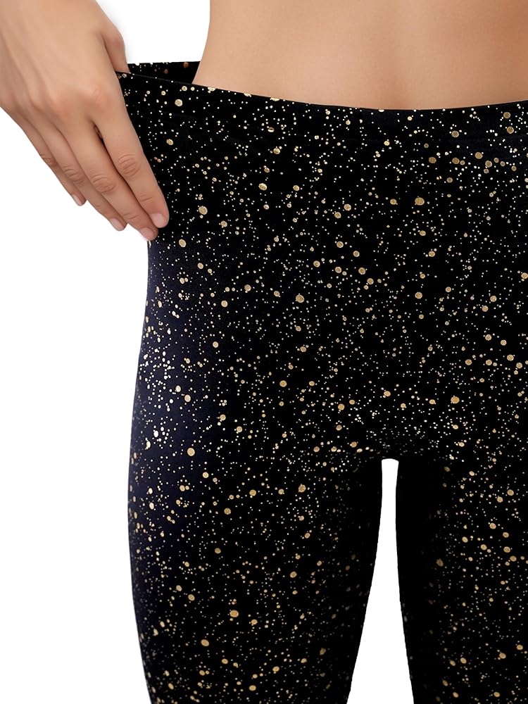 تعليمات العناية السهلة - للحصول على أفضل النتائج، قومي بقلب السراويل الضيقة من الداخل إلى الخارج قبل الغسيل. يُغسل في الغسالة بماء بارد على دورة لطيفة ويُجفف بالمجفف على درجة منخفضة أو يُعلق ليجف للمساعدة في الحفاظ على التألق والطباعة ذات النقاط الذهبية.