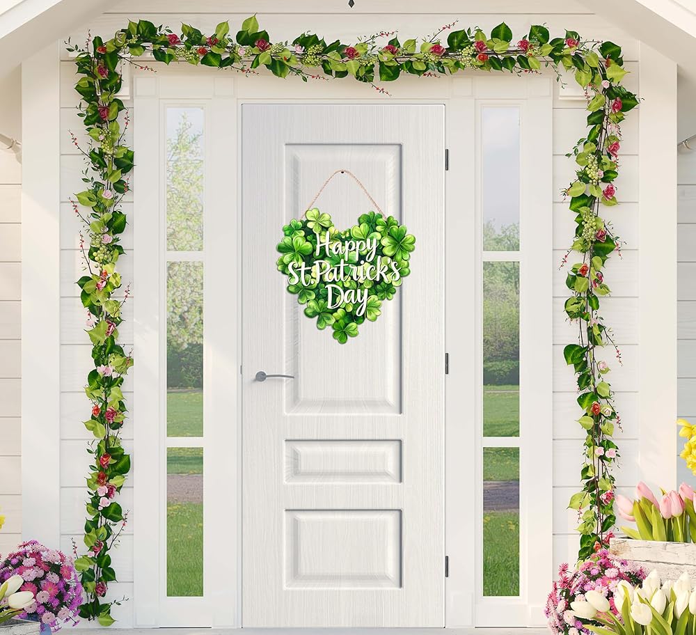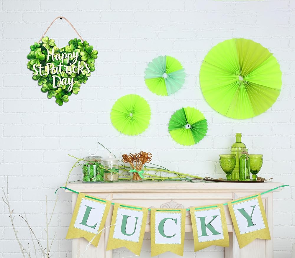 St. Patrick's Day Door Sign: The Green Shamrock door sign hanging(The rope is included) on the outside give your home a St. Patrick's Day touch,and the eye catching door sign will attract and surprise your guests.This hanging sign will add more festival atmosphere to your party!