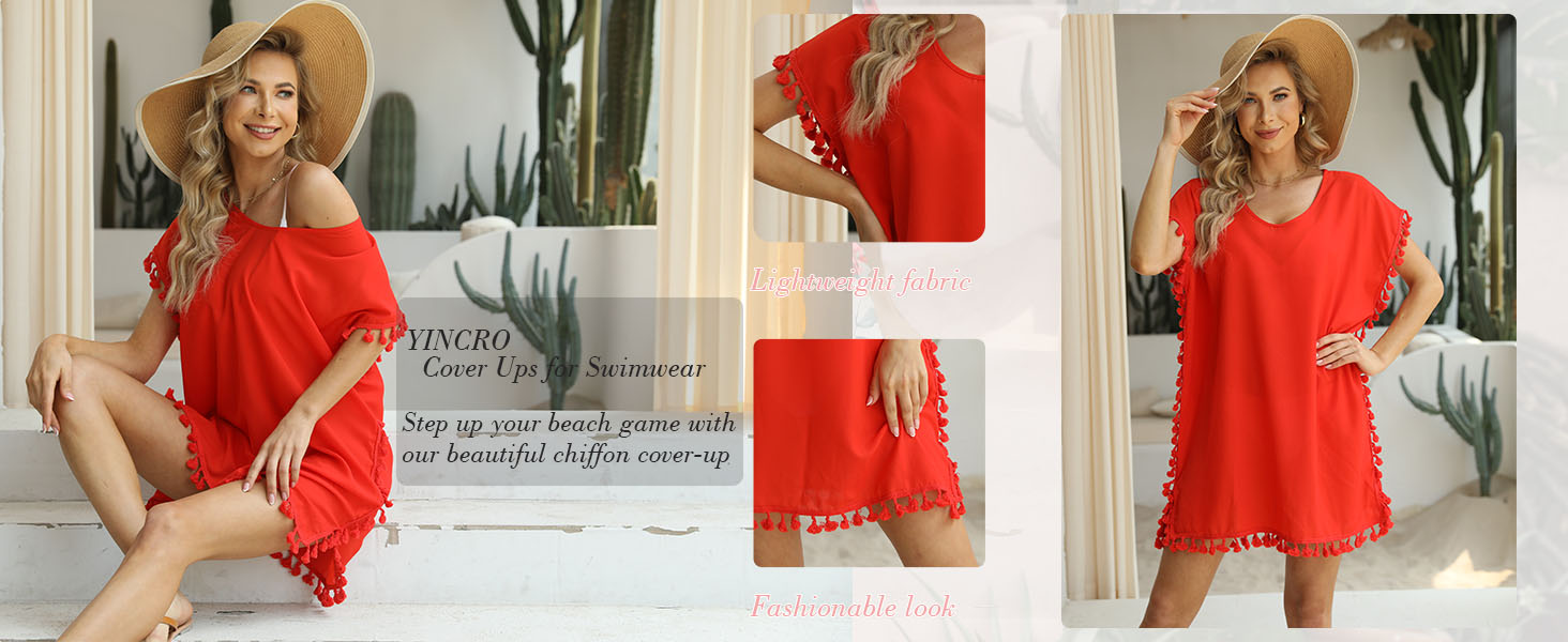 فستان سباحة أنيق على الشاطئ: فستان سباحة أنيق ومشرق على الشاطئ.