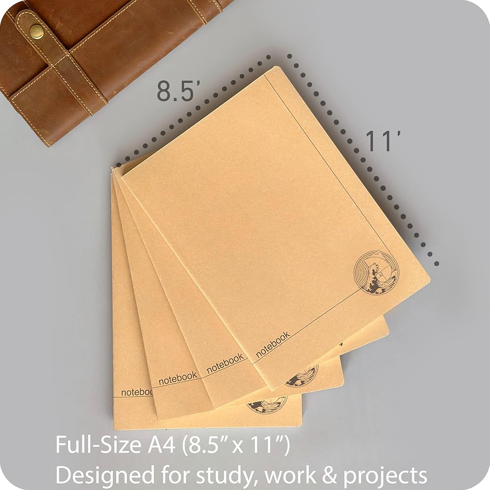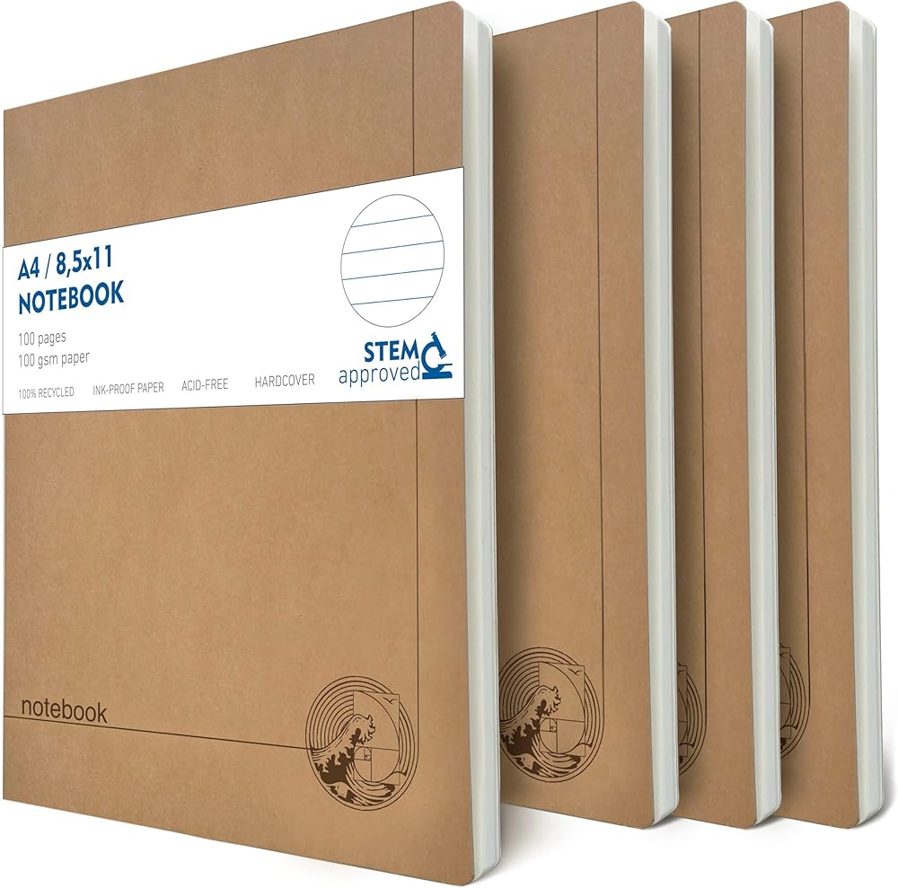 4 عبوات من دفاتر الملاحظات المبطنة مقاس A4 - للمدرسة والمكتب والعمل الإبداعي، يتضمن كل دفتر ملاحظات في هذه المجموعة 100 صفحة (50 ورقة). توفر أجهزة الكمبيوتر المحمولة الكبيرة هذه، مقاس 8.5 × 11 بوصة، مساحة كبيرة لأفكارك وعملك.
