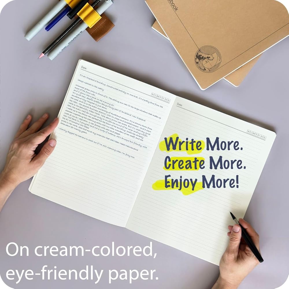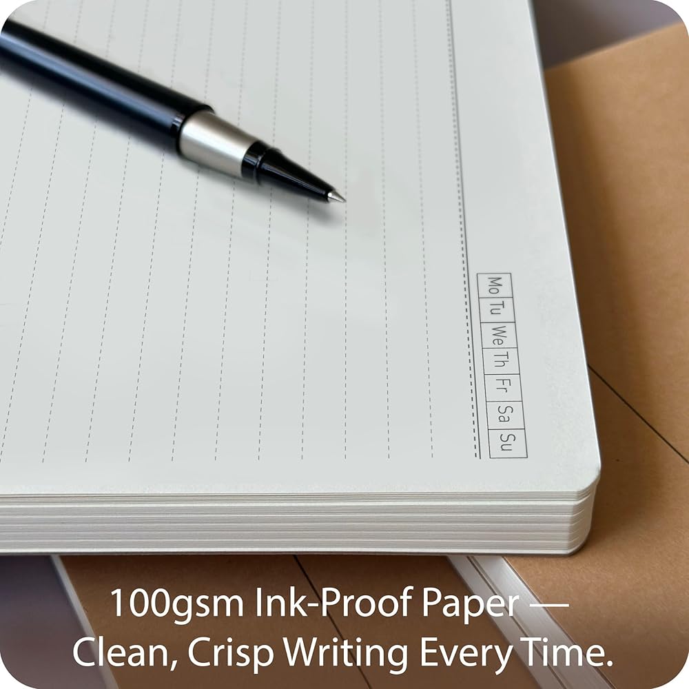 ورق سميك 100 جرام في المتر المربع - كتابة سلسة، لا ينزف حبر، استمتع بملاحظات نظيفة مع ورقنا الممتاز الذي لا ينزف. سواء كنت تستخدم أقلام هلامية أو علامات أو أقلام رصاص، فإن الصفحات التي يبلغ وزنها 100 جرام في المتر المربع تقاوم الظلال والتلطخ - وهي مثالية للطلاب والفنانين والمحترفين.