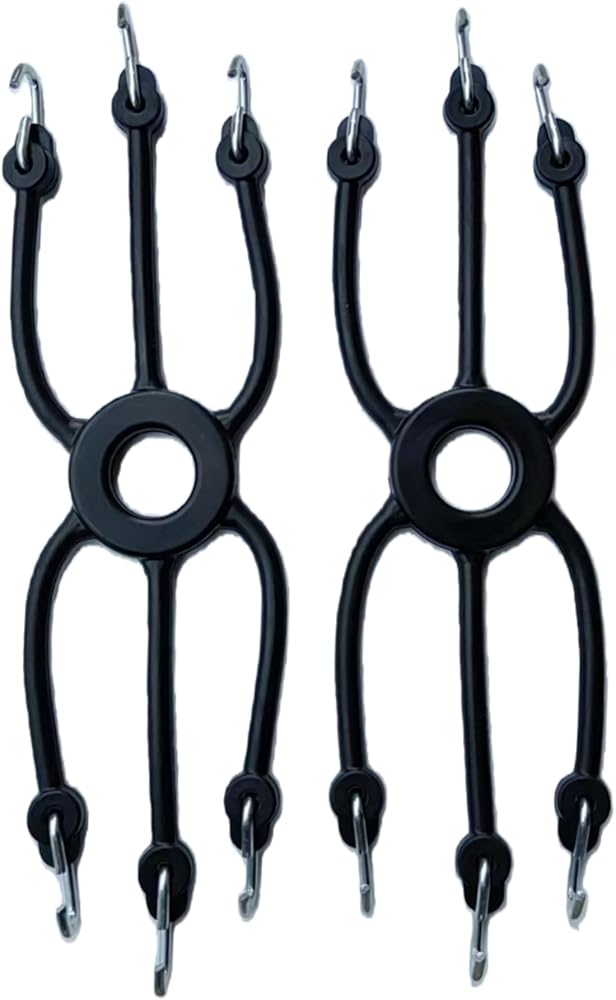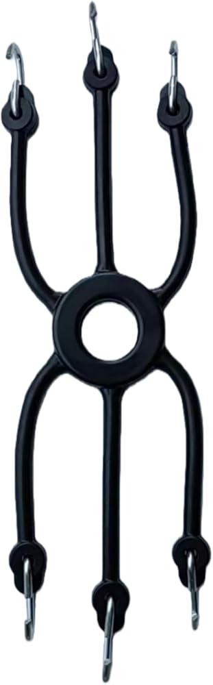 • [Working principle]:Spider bungees work by pulling the slack evenly out of the chain toward the center hub of the bungee