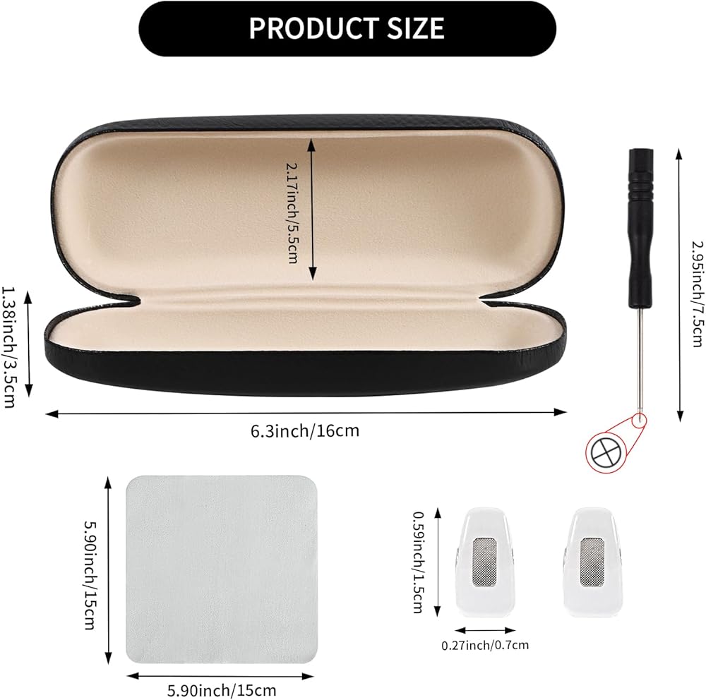 • All-in-One Repair Kit glass cases for eyeglasses women included Comes with a micro screwdriver, 2 replaceable nose pads, hard glasses case for women and a microfiber cleaning cloth—perfect for quick adjustments, maintenance, hard shell glasses case and keeping your glasses spotless, reading glasses case