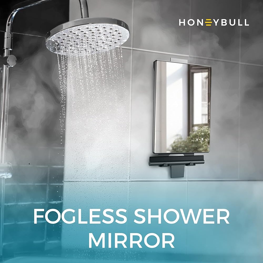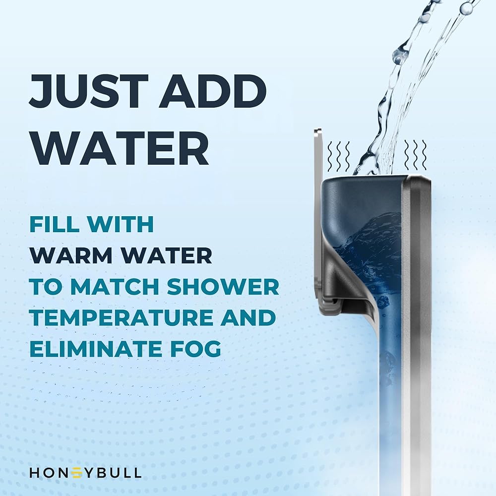 تقنية خالية من الضباب، يتم تفعيلها بالماء الساخن: استمتع برؤية واضحة في كل مرة مع مرآة الدش الخالية من الضباب من HONEYBULL. املأ خزان المياه المدمج بالماء الساخن قبل كل استحمام - تعادل درجة الحرارة وتزيل الضباب بشكل طبيعي دون طلاء أو كهرباء أو متاعب.