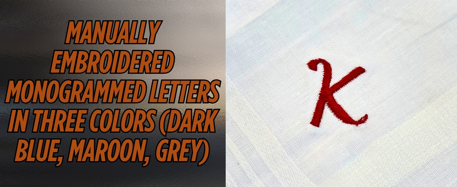 • الحجم - المناديل لدينا ذات حجم كبير 18 بوصة × 18 بوصة أو 45 سم × 45 سم | الحروف الأولية البسيطة والأنيقة تأتي بثلاثة ألوان - الأزرق الداكن، الرمادي، المارون.