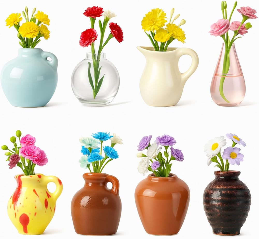 مغناطيس مزهرية سيراميك صغير للثلاجة - 8 مجموعات من أواني الزهور الصغيرة المصنوعة يدويًا للديكور المنزلي الجمالي، للنساء أو الأم أو المعلم، ديكور فخار بوهو، لمسة فنية صغيرة للمطبخ أو المكتب