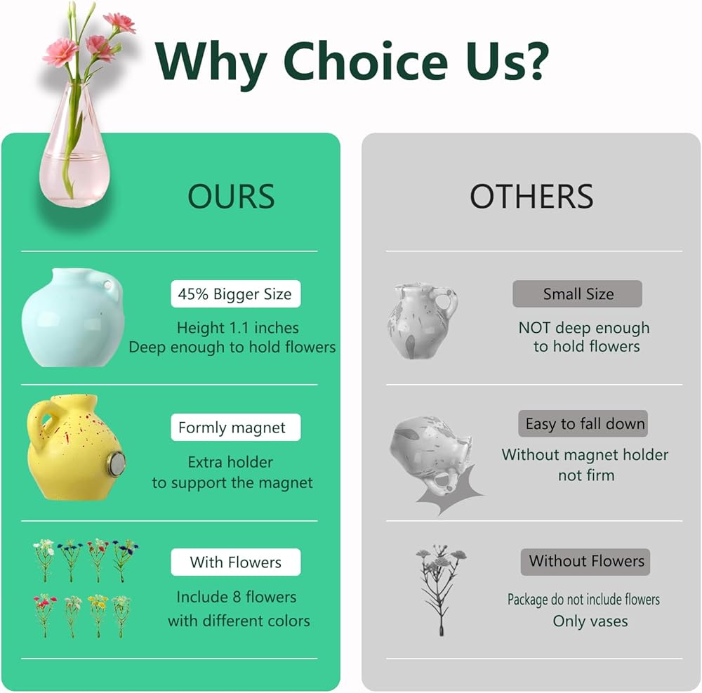 [قطع فنية صغيرة مصنوعة يدويًا] كل مغناطيس مزهرية صغير مصنوع يدويًا بشكل فريد من خلال طلاء السيراميك اللامع والشكل الدقيق - مزيج ساحر من الفن والوظيفة الذي يضفي الحياة على أي مساحة صغيرة.