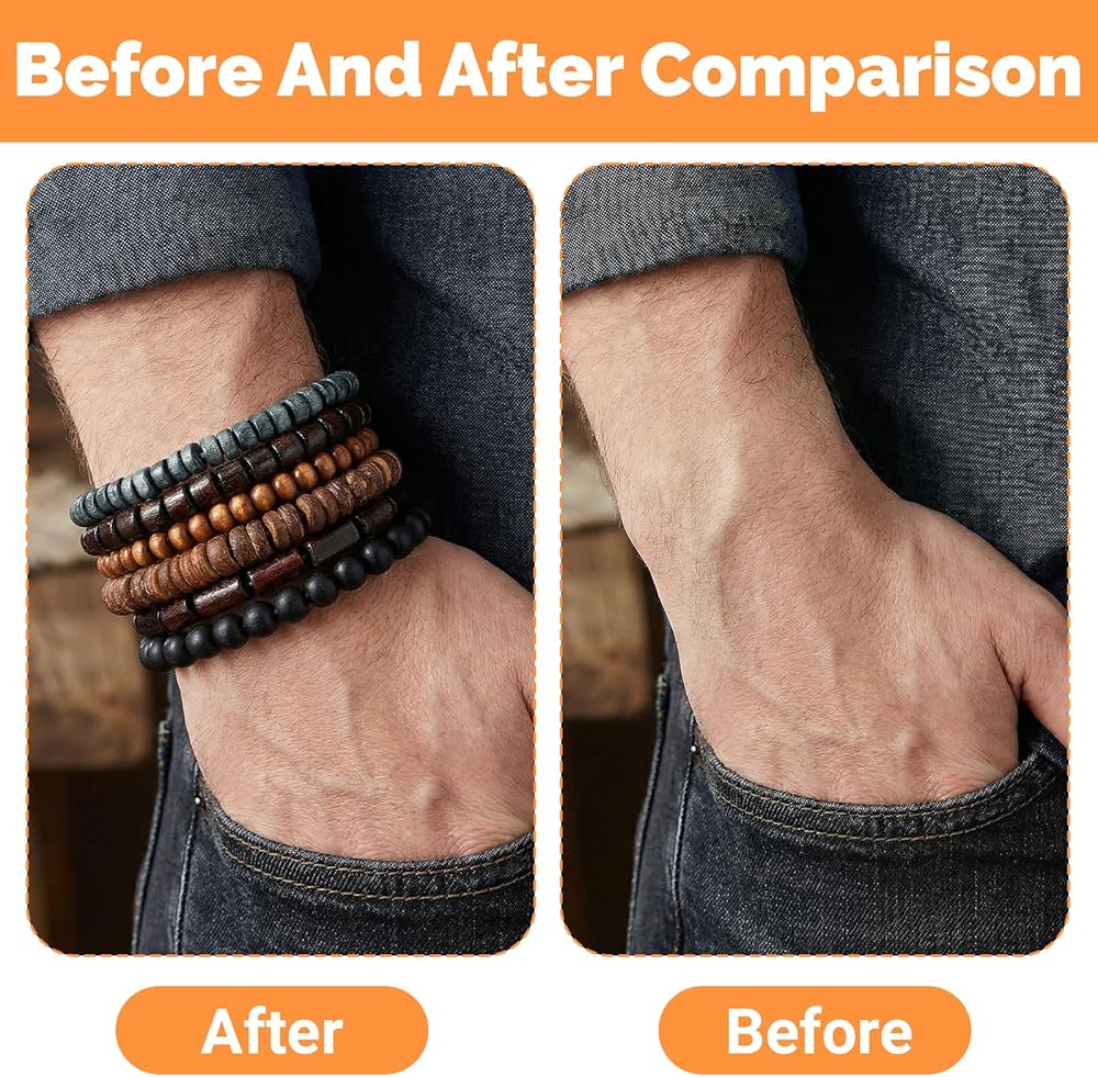 Each men bracelet utilizes strong, flexible elastic rope, which comfortably fits wrists ranging from 7 to 8.6 inches without clasps or fuss. The elasticity allows the bracelet to move naturally with you, avoiding pinching or constriction. The stack of several beaded bracelets that secure yet gently fit guarantees comfort whether you're working, relaxing, or on the move.