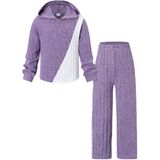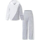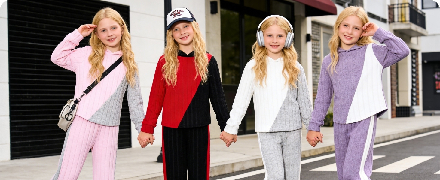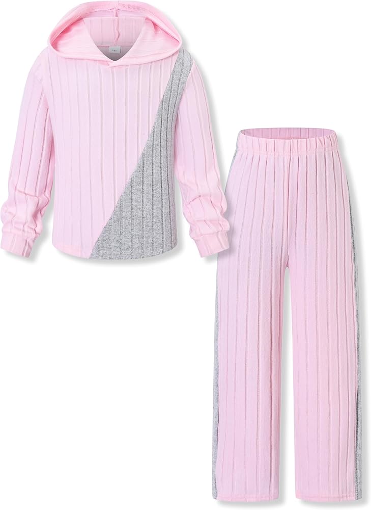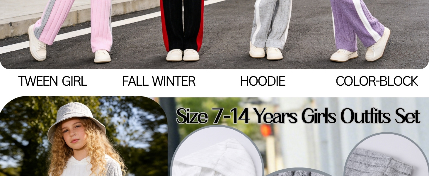 🎾 Trendy & Comfortable Design : Girls winter outfit is combined with long sleeve splicing color sweatshirt with fashion hoodies and pair of wide leg pants with an elastic waistband for easy movement.