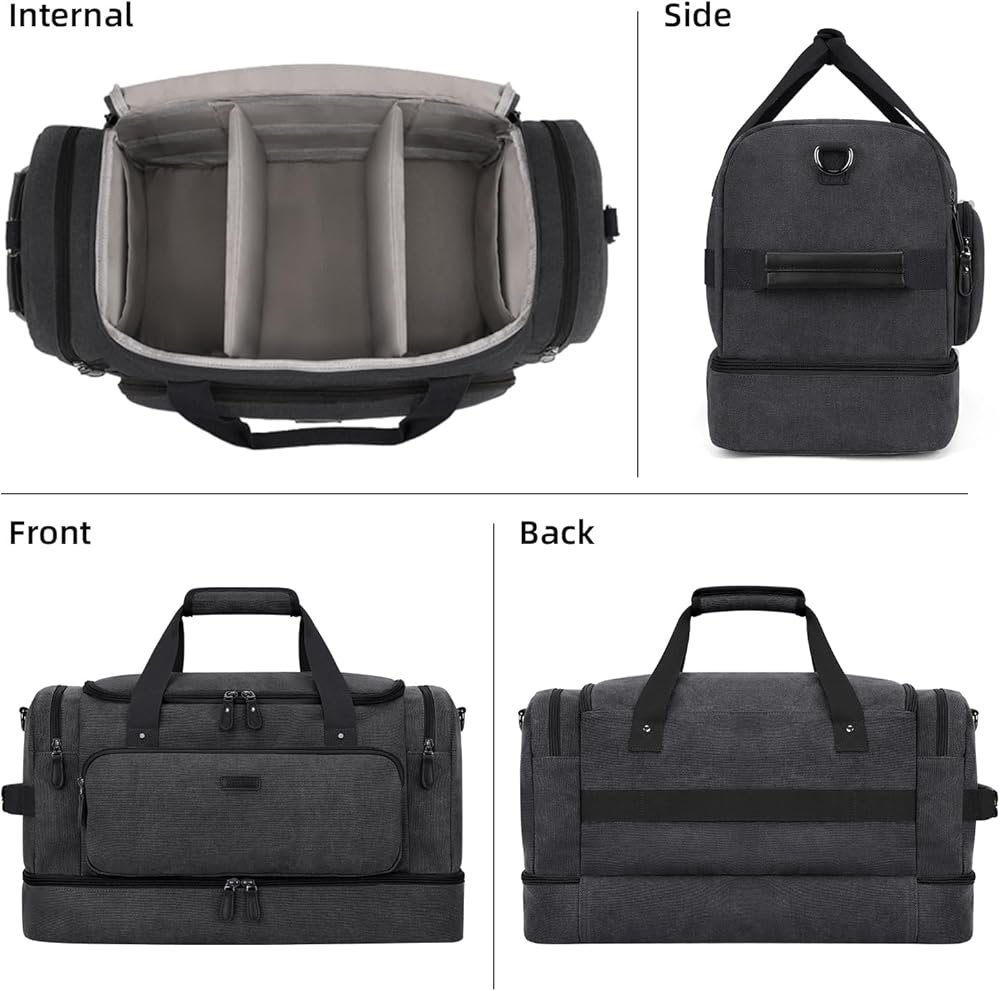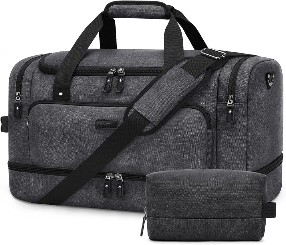• حقيبة سفر من القماش الخشن بتصميم ممتاز: الحجم: 21 × 13 × 9 بوصة، 2.7 رطل. حقائب السفر من ZOMFELT مصنوعة من قماش مقاوم للماء ومشمع بشكل متين، وأجزاء صلبة قوية وسحابات مزدوجة عالية الجودة. مقبض حمل مبطن لحمل مريح. حزام كتف كبير قابل للتعديل مناسب لتحرير يديك أثناء السفر