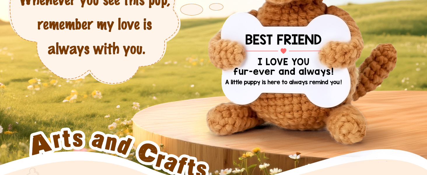 أنا أحبك يا صديق: كأشياء لطيفة رائعة للصديق، فإن الحيوان المحشو بالكلاب الفخمة من الكروشيه سيجعل الصديق يشعر بالمرح ويحصل على دعم إيجابي عاطفي؛ تثير المشاعر حولك، تُعد القطيفة المحشوة للكلاب من العناصر اللطيفة لتخفيف التوتر والقلق