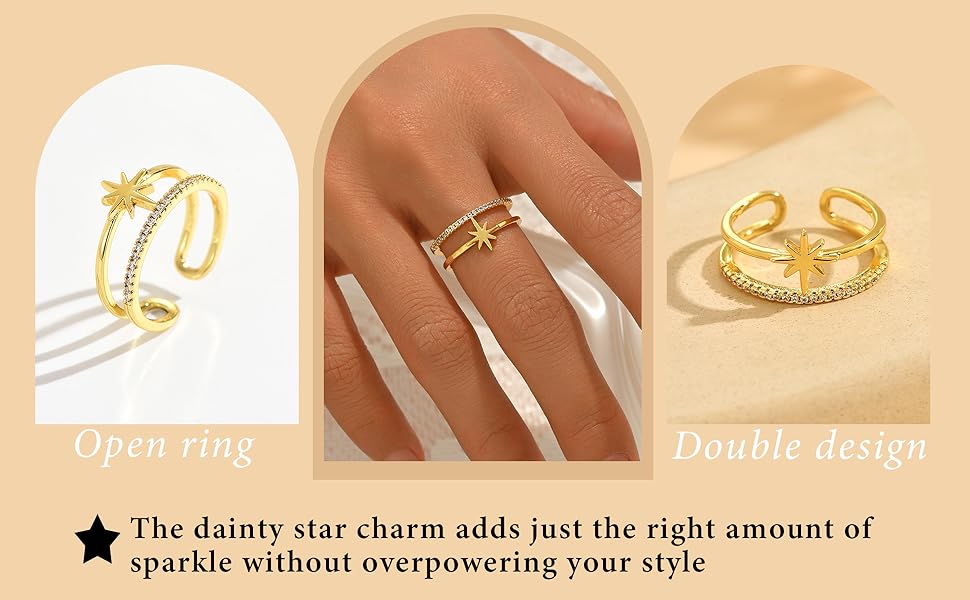حلقات قابلة للتعديل للنساء: الكفة المفتوحة، التصميم الالتفافي القابل للتعديل لهذه القطعة يمنحها مظهرًا عصريًا وفي الوقت نفسه يسمح للمنتج بتلبية أحجام الأصابع المختلفة.