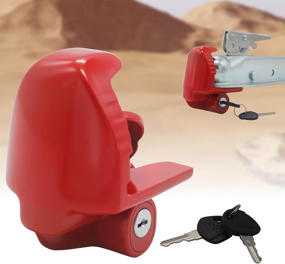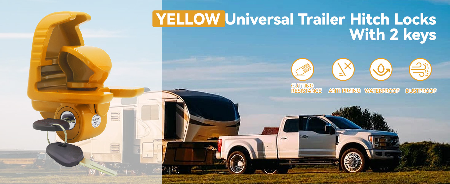 أمان عالي للغاية ومضاد للسرقة: يمكن لقفل وصلة ربط المقطورة الخاص بنا التحكم في الوصلة بالمفاتيح لمنع الآخرين من سحب جهاز الاستقبال/الوصلة ويمكن لقفل لسان كرة الربط حماية المقطورة الخاصة بك من أن يتم سحبها بواسطة المركبات الأخرى.