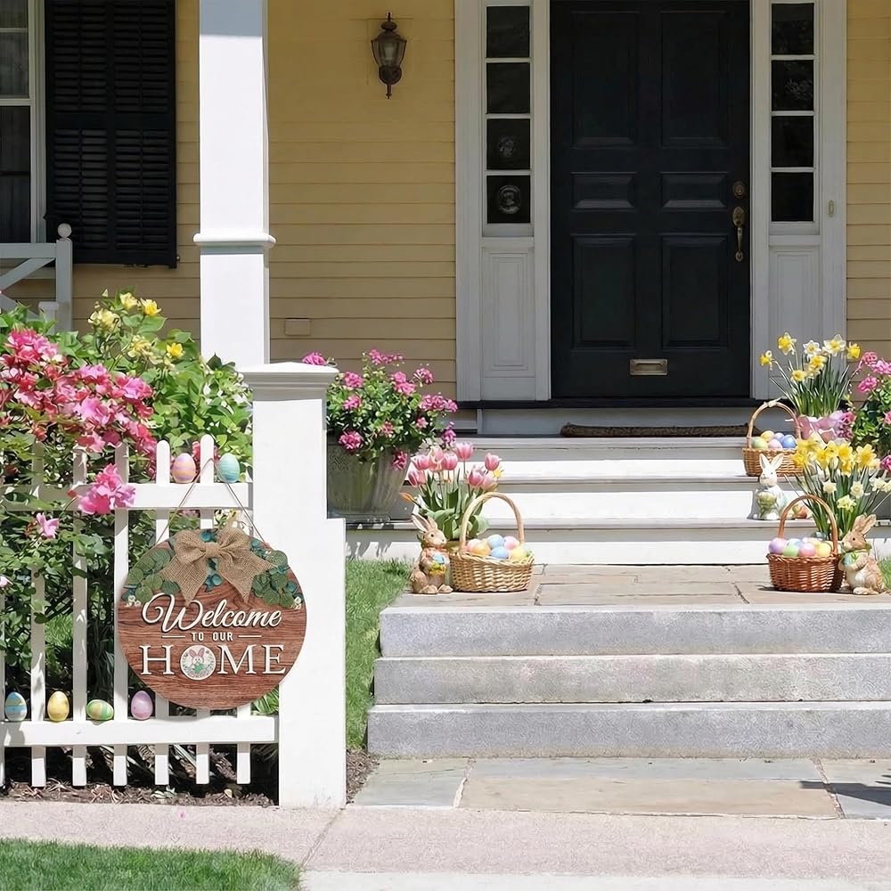 • مادة متينة - لافتة باب الترحيب مصنوعة من خشب سميك عالي الجودة، تتميز زينة باب عيد الفصح الخارجية هذه بحواف ناعمة وطباعة غير سامة ومقاومة للبهتان. قوي بما فيه الكفاية لتحمل العناصر الخارجية، وقد تم تصميمه ليدوم خلال مواسم الربيع وعيد الفصح المتعددة