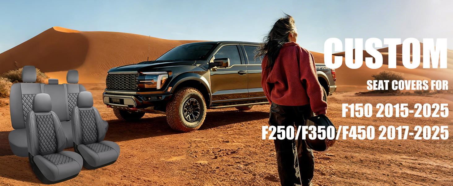 【ملاءمة مخصصة】أغطية مقاعد الشاحنة هذه مصممة خصيصًا لـ 2015-2025 Ford F150، 2017-2025 F250/F350/F450. إنها مناسبة لمختلف طرازات Ford F150، F250/F350/F450، على سبيل المثال، XLT XL Lariat Platinum King Ranch Raptor، كابينة الطاقم فائقة التحمل، (يرجى الرجوع إلى الصور التفصيلية لتعديل النموذج). ملاحظة: قبل الشراء، تأكد من أن شاحنتك تناسب الطراز أعلاه.