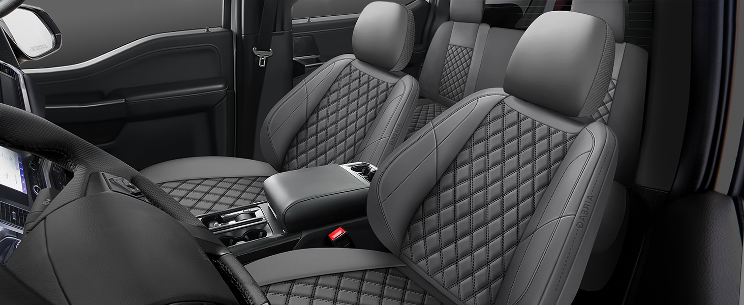 【نظيف ومتين】أغطية مقاعد الشاحنة لسيارة Ford f150 مصنوعة من جلد صناعي عالي الجودة، مما يحمي مقاعد سيارتك من الانسكابات والبقع والأوساخ والتآكل. كما أنه سهل التنظيف، وهو خيار عملي للأشخاص المشغولين الذين يرغبون في الحفاظ على المظهر الداخلي لسيارتهم بشكل رائع!