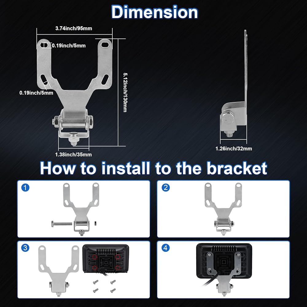 • تطبيق واسع: يُسهّل استخدام دعامة التثبيت لتثبيت المصباح الأمامي مقاس 4 × 6 بوصة على رف السقف، والمصد الأمامي، وعمود شاحناتك، وATV، وUTV، والجرارات والمركبات الثقيلة، واستخدامها كمصابيح عمل، ومصباح قيادة مساعد، ومصباح ضباب، ومصباح احتياطي، ومصباح صحراوي، وإضاءة تشغيل نهارية.