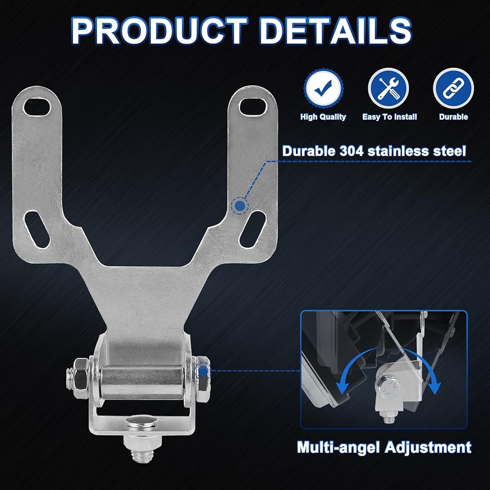 • أداء عالي: مصنوع من الفولاذ المقاوم للصدأ 304 المتين للحصول على قوة استثنائية ومقاومة للتآكل، ويتميز بنظام تثبيت مرن يسمح بتعديل دقيق لزاوية المصباح الأمامي، مما يضمن محاذاة شعاع مثالية وتحسين الرؤية.