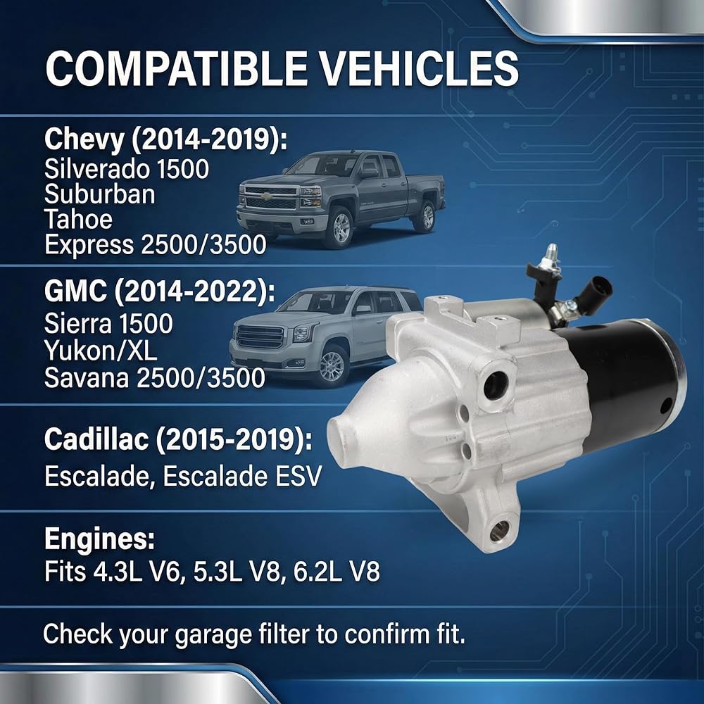 محرك بداية 10910 متوافق مع 14-18 تشيفي سيلفرادو 1500 سوبربان تاهو، كاديلاك إسكاليد 6.2 لتر 2015-2016، جي إم سي سييرا 1500 V6 V8 4.3 5.3L 6.2L، 2015-2016 جي إم سي يوكون، 12655055 M000T24072