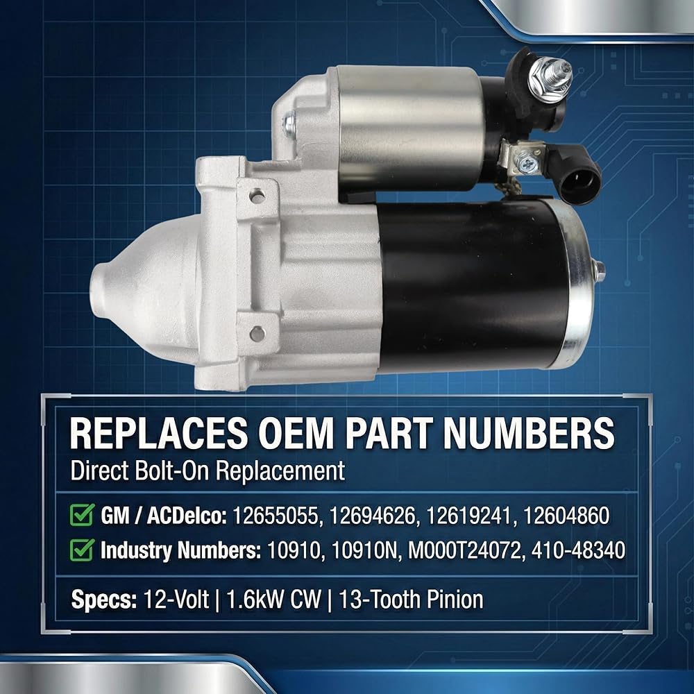 【يستبدل أرقام المعدات الأصلية】 استبدال مباشر بمسمار. متوافق مع أرقام أجزاء GM / ACDelco: 12655055، 12694626، 12619241، 12604860. أرقام الصناعة المرجعية: 10910، 10910N، M000T24072، 410-48340. 12 فولت، 1.7 كيلو وات CW، ترس ذو 10 أسنان. 2500/3500 (2018-2020) مزود بمحركات سعة 4.3 لتر أو V8. بديل مثالي لشاحنات العمل التي تتطلب دورات توقف وبدء متكررة.