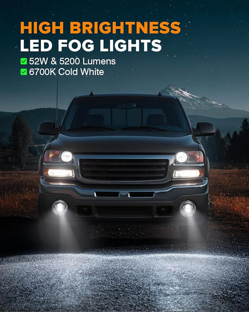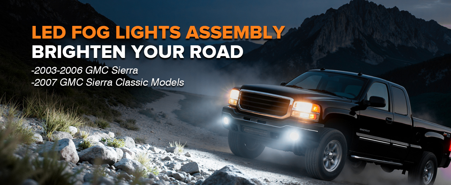 【مناسب تمامًا لسيارة سييرا الخاصة بك】مصابيح ضباب بديلة مباشرة لـ 2003-2006 جي إم سي سييرا 1500/2500/3500/2500HD/3500HD و2007 سييرا كلاسيك (باستثناء دينالي C3). يستبدل OEM #GM2592128، GM2592154، GM2593154، GM2593128