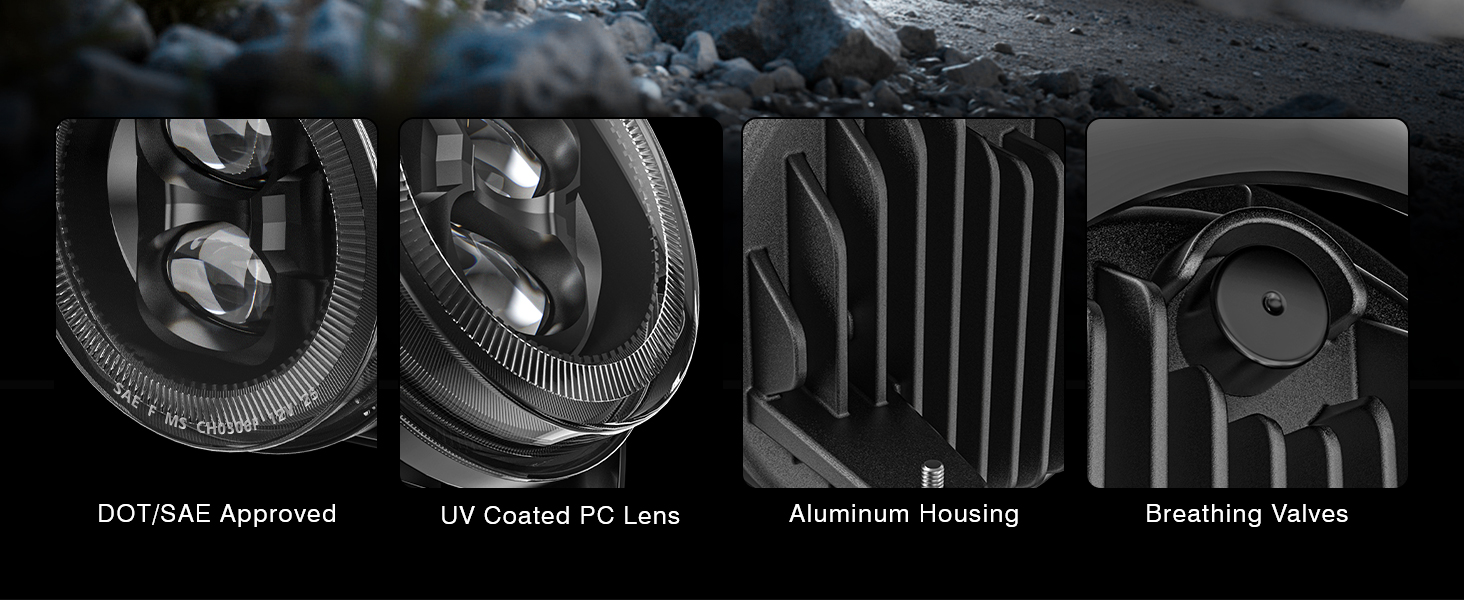 【مصممة بشكل متين لتدوم طويلاً】تضمن عدسة البولي كربونات المتينة بالإضافة إلى غطاء الألومنيوم القوي تبديد الحرارة الأمثل وعمر افتراضي يزيد عن 50,000 ساعة. تم تصميم مصابيح الضباب الخاصة بنا لتحقيق أداء مستقر