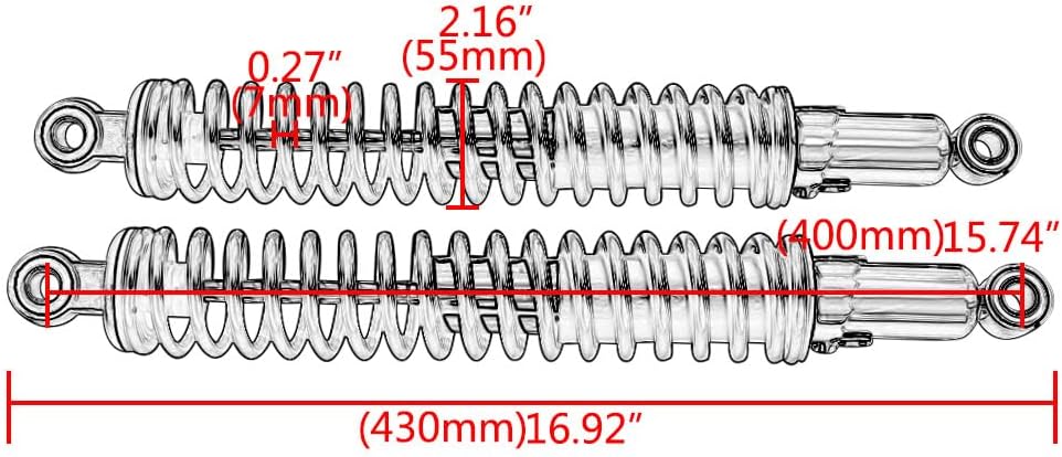 【Custom Design】The adjustable rear air shock absorber is compatible with most Honda XL185 and XL185S models,and length of eye to eye core is 15.74 inch(400mm),also suitable for off-road motorcycles,street cars.karts,ATVS and Quad bikes,please check the aviable size before your order