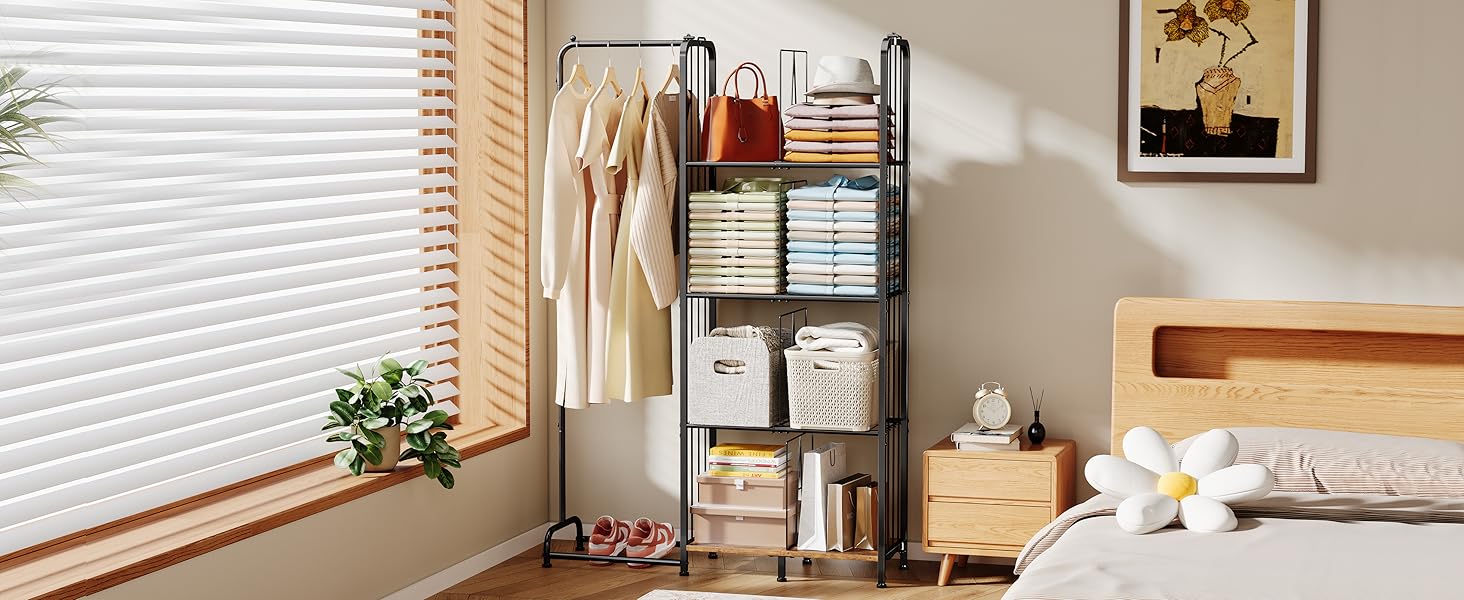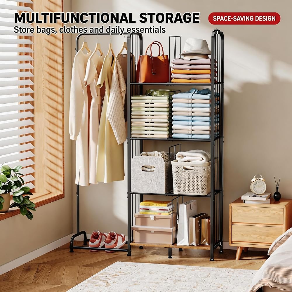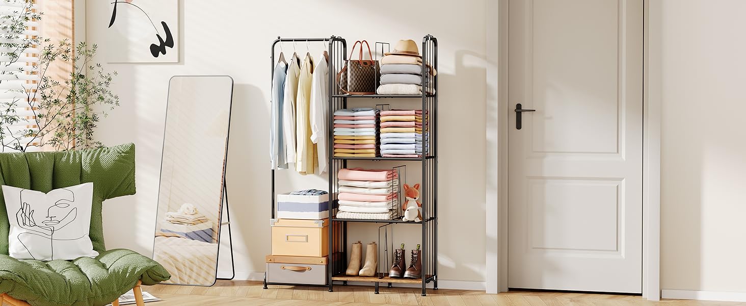 【حامل حامل محفظة من 4 طبقات】: يتيح لك منظم خزانة المحفظة هذا الوصول بسهولة إلى حقائبك وتنسيق ملابسك اليومية بسرعة. بفضل تصميمه البسيط، فإنه يضيف لمسة أنيقة إلى أي مساحة وهو مثالي لزوايا غرفة النوم، وخزائن الملابس، وغرف المعيشة، وخزائن الملابس، ورفوف المعاطف، ومناطق الزينة. لا مزيد من الفوضى الفوضوية قبل الخروج. الحجم: 39.2 بوصة طول × 11.4 بوصة عرض × 59.5 بوصة ارتفاع