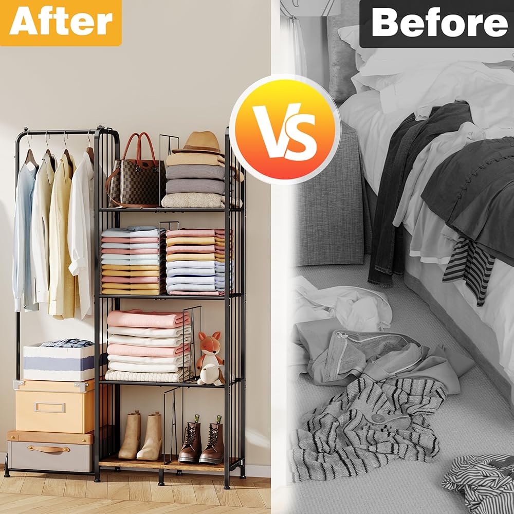 【حل منظم متعدد الأغراض】: هذا المنظم الرأسي متعدد الاستخدامات وذو السعة العالية سيحدث ثورة في تنظيم خزانة ملابسك. فهي لا تحافظ على ترتيب حقائب اليد وحقائب اليد وحقائب اليد الخاصة بك بشكل أنيق فحسب، بل تخزن أيضًا الملابس والأوشحة والقبعات وحقائب الهدايا والأحذية والمزيد. قل وداعًا للفوضى الفوضوية، فهو الحل الأمثل للتخزين المتكامل.