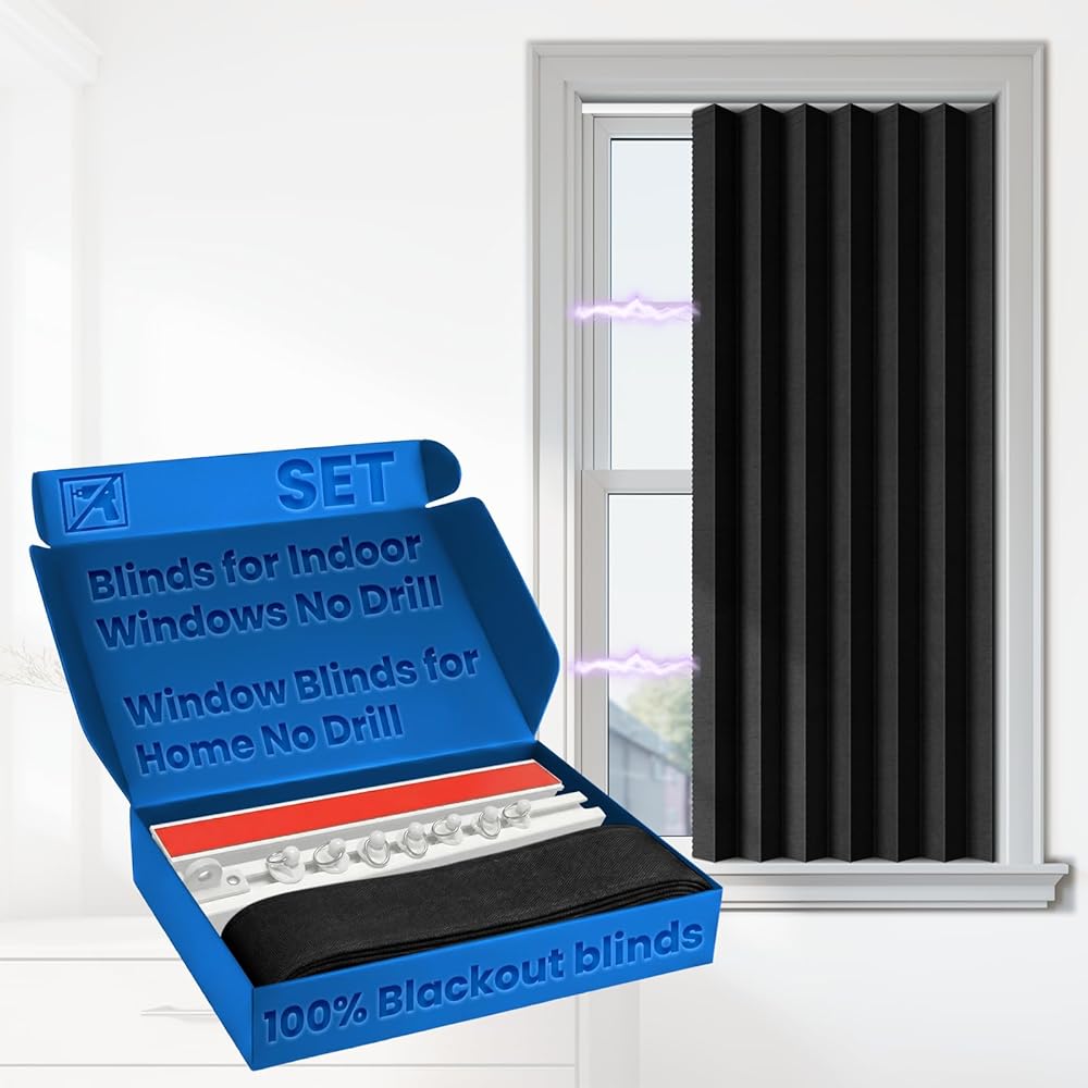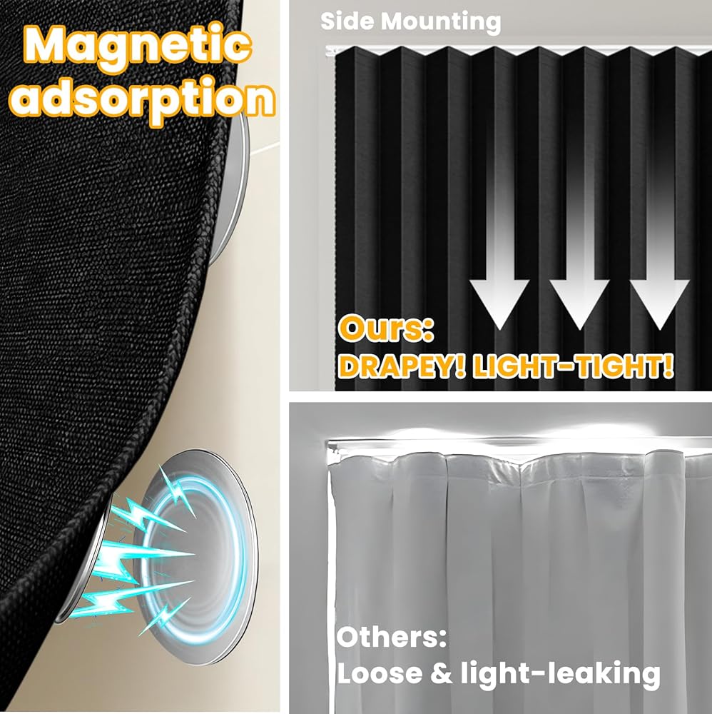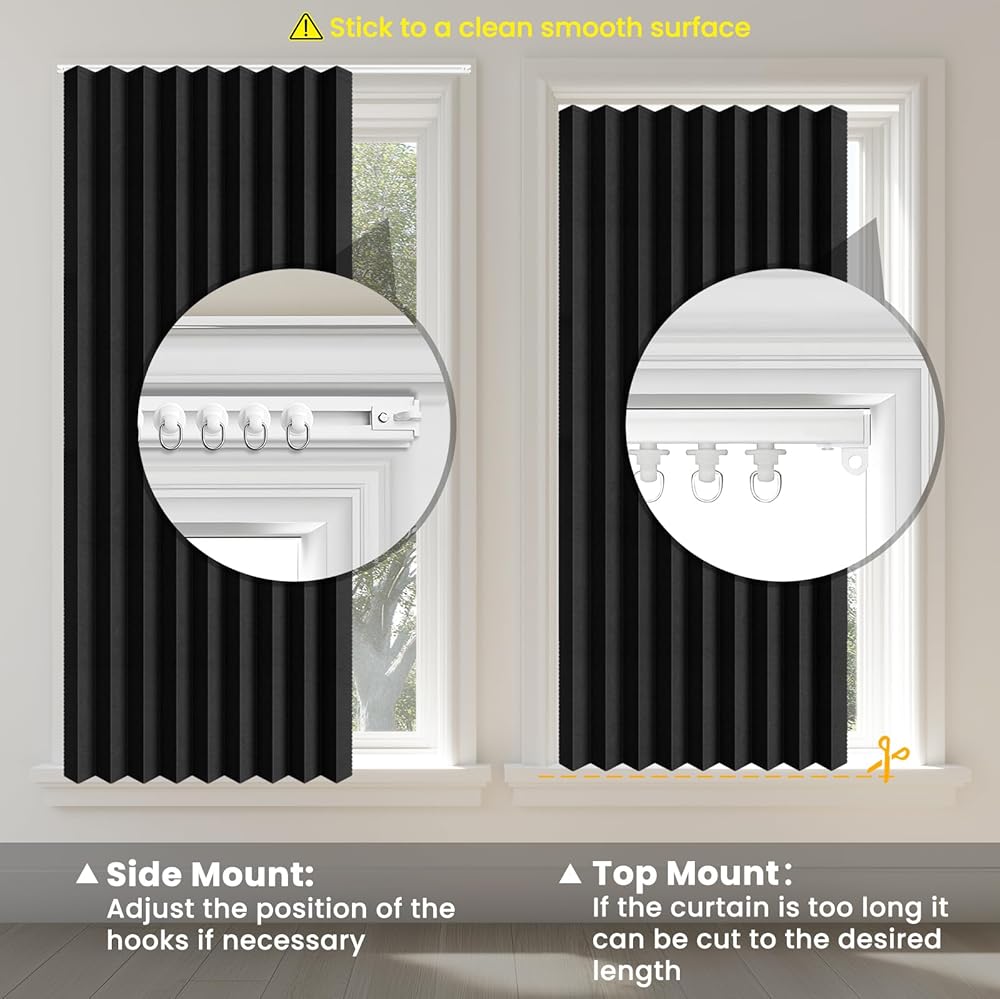 ستائر تعتيم بدون حفر، ستائر نافذة حاجبة للضوء بنسبة 100% لغرفة النوم، ستائر تعتيم محمولة للمنزل