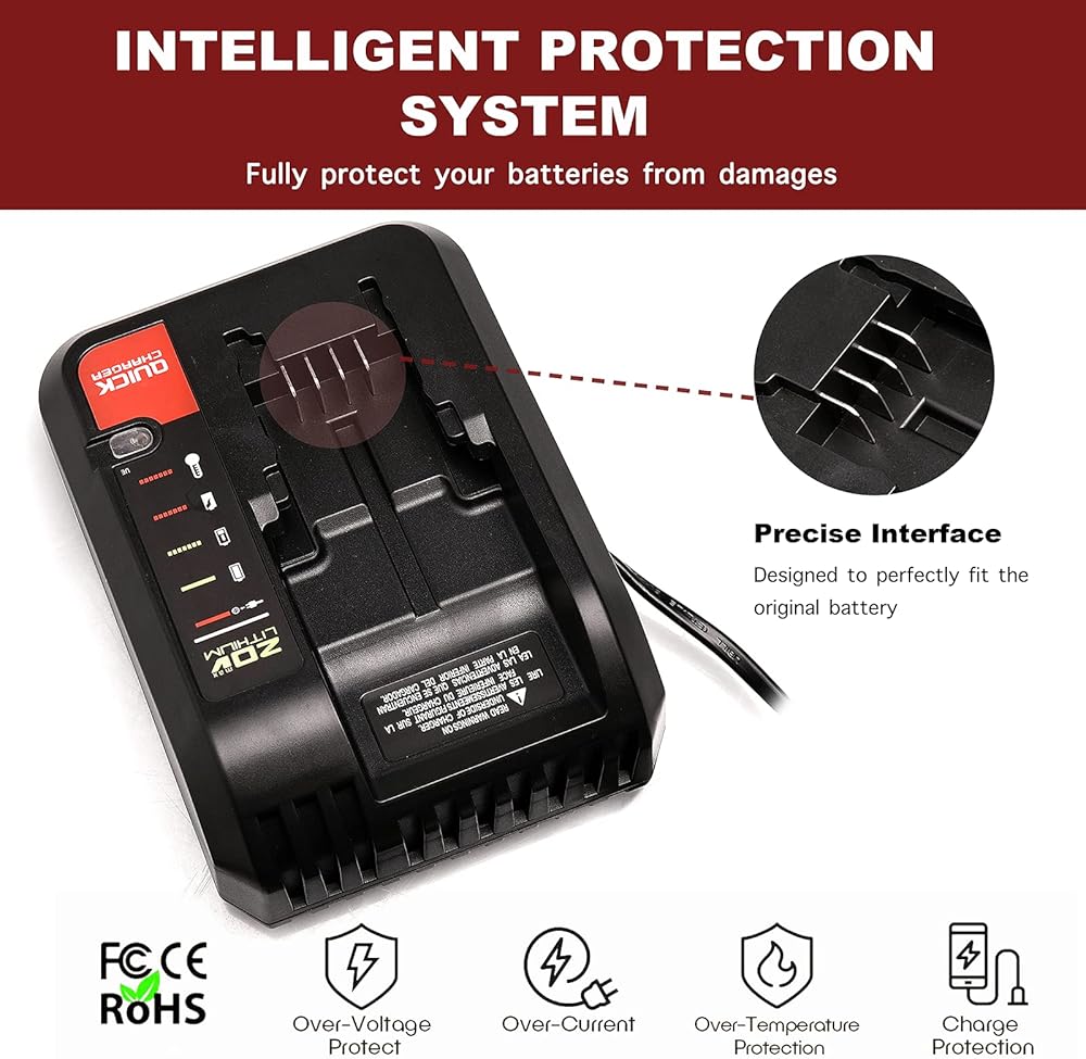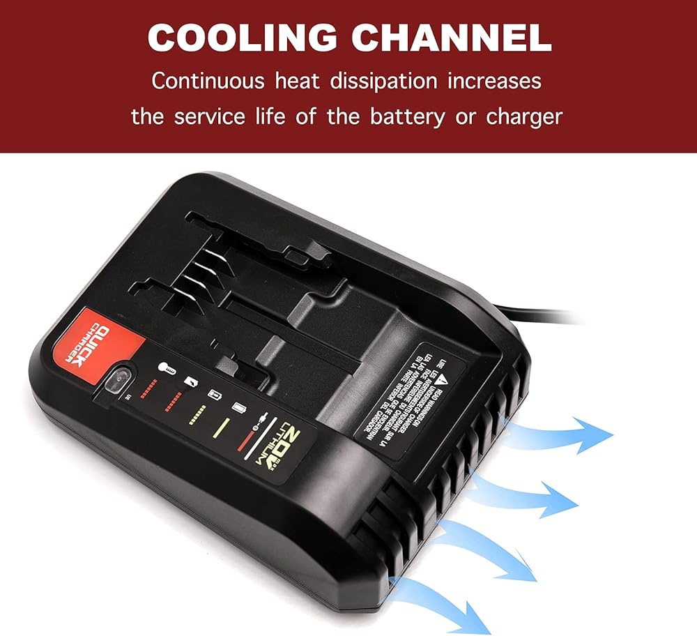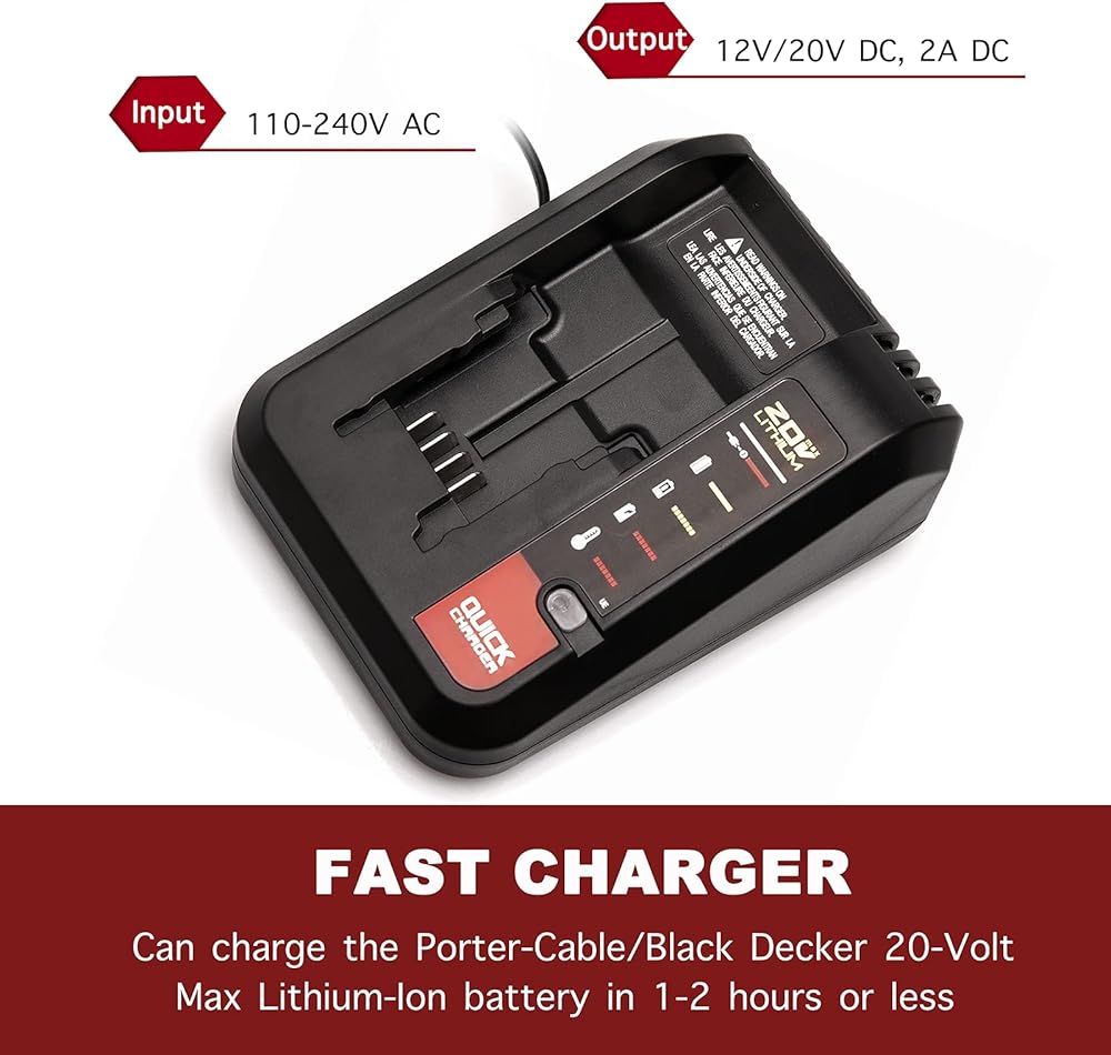 • 【شاحن سريع】يمكنه تشغيل بطارية الليثيوم 20 فولت بكابل Porter بكفاءة أو بطارية الليثيوم Black & Decker 20 فولت بحد أقصى - خلال 1.2 ساعة أو أقل