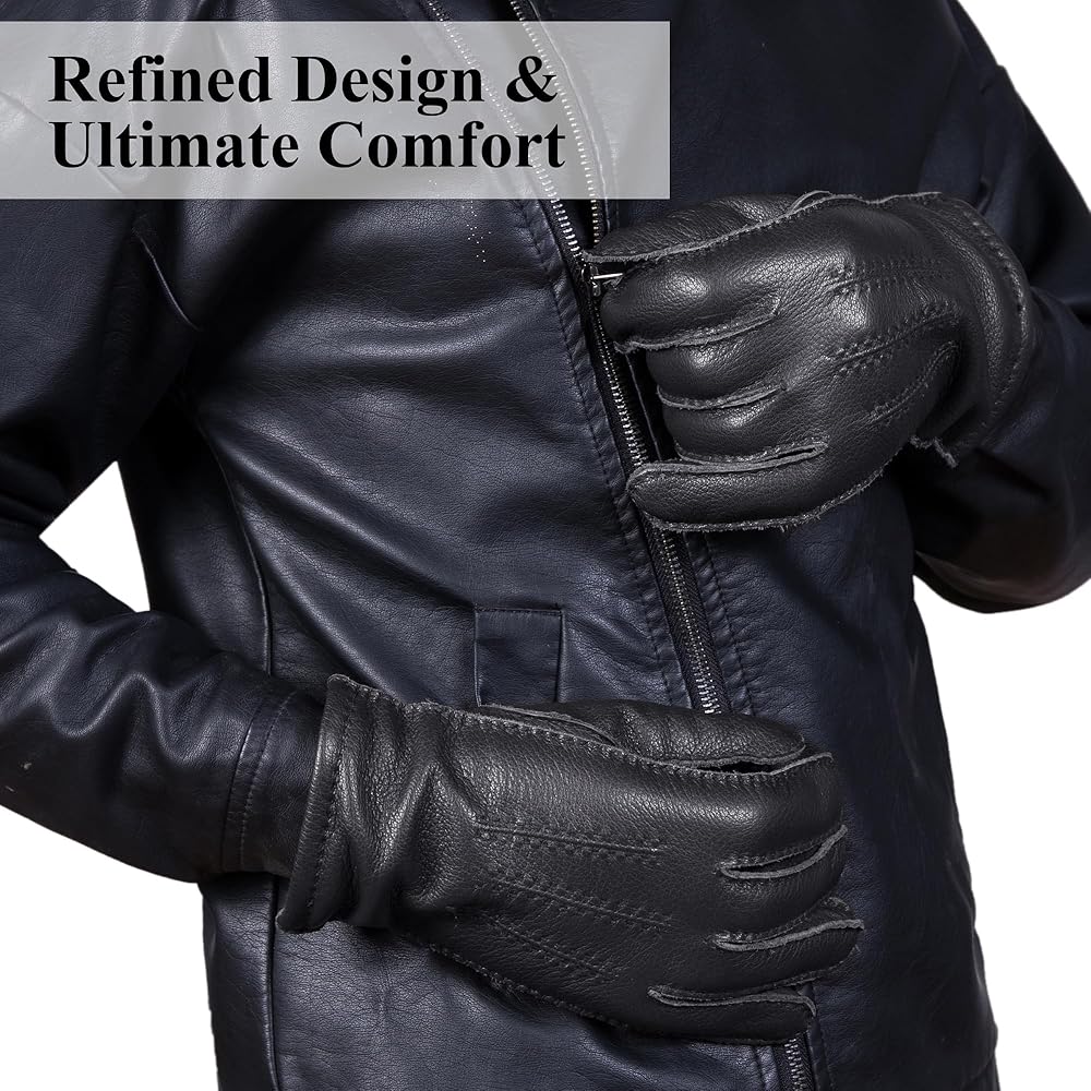خامة فاخرة: مصنوعة من جلد الغزال الأصلي، المعروف بنعومته ومرونته ومتانته التي لا مثيل لها. توفر هذه القفازات ملاءمة محكمة وعزلًا ممتازًا للحفاظ على راحة يديك.