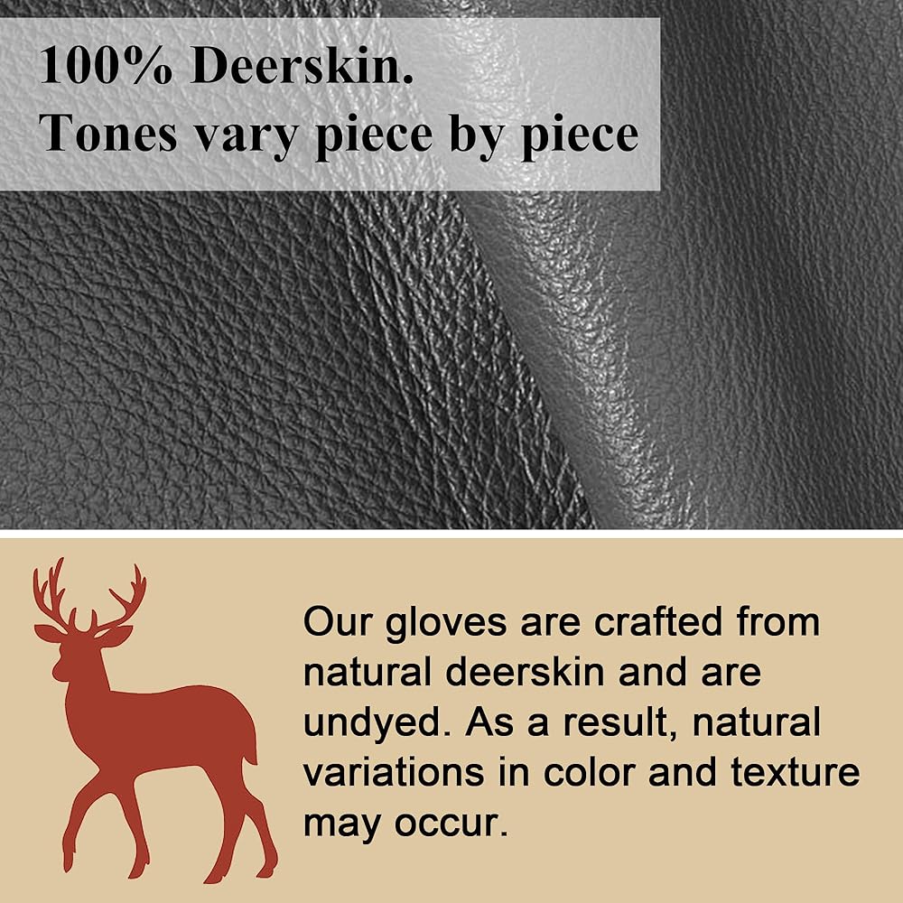 دافئ ومريح: جلد الغزال الطبيعي مع بطانة من الصوف الناعم يحافظ على دفء يديك حتى في الطقس البارد. تمنع المادة المسامية ارتفاع درجة الحرارة، وتوفر الراحة طوال اليوم.