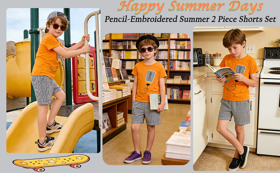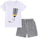 تصميم مرح بألوان متعددة، مفضل للأطفال للوهلة الأولى: تم تزيين التي شيرت ذو اللون الصلب بأكمام قصيرة بتطريز مبتكر على شكل قلم رصاص، مما يشكل صدى بصري مع الشورتات المخططة باللونين الأسود والأبيض للحصول على مظهر حيوي وجذاب. الألوان الزاهية والحيوية تزيل الرتابة وتعزز متعة ارتداء الملابس لطفلك دون عناء.